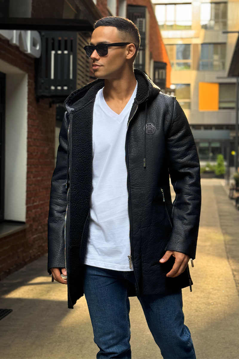 Мужское утеплённое пальто Philipp Plein чёрного цвета