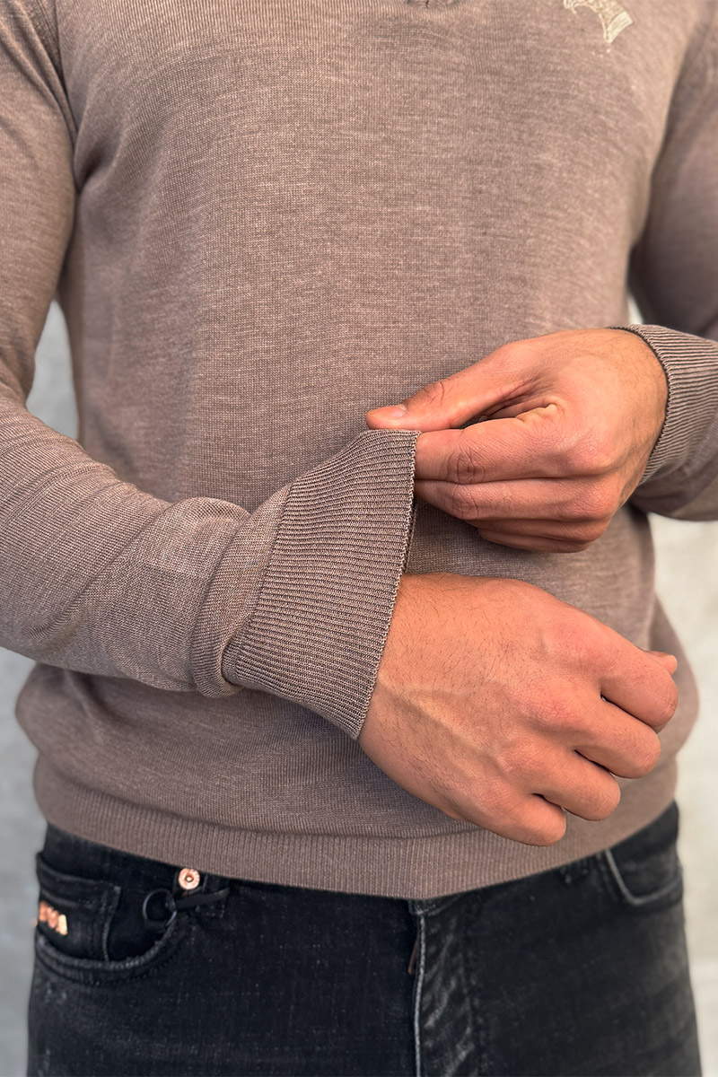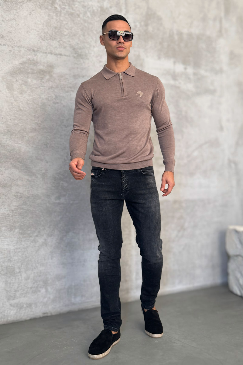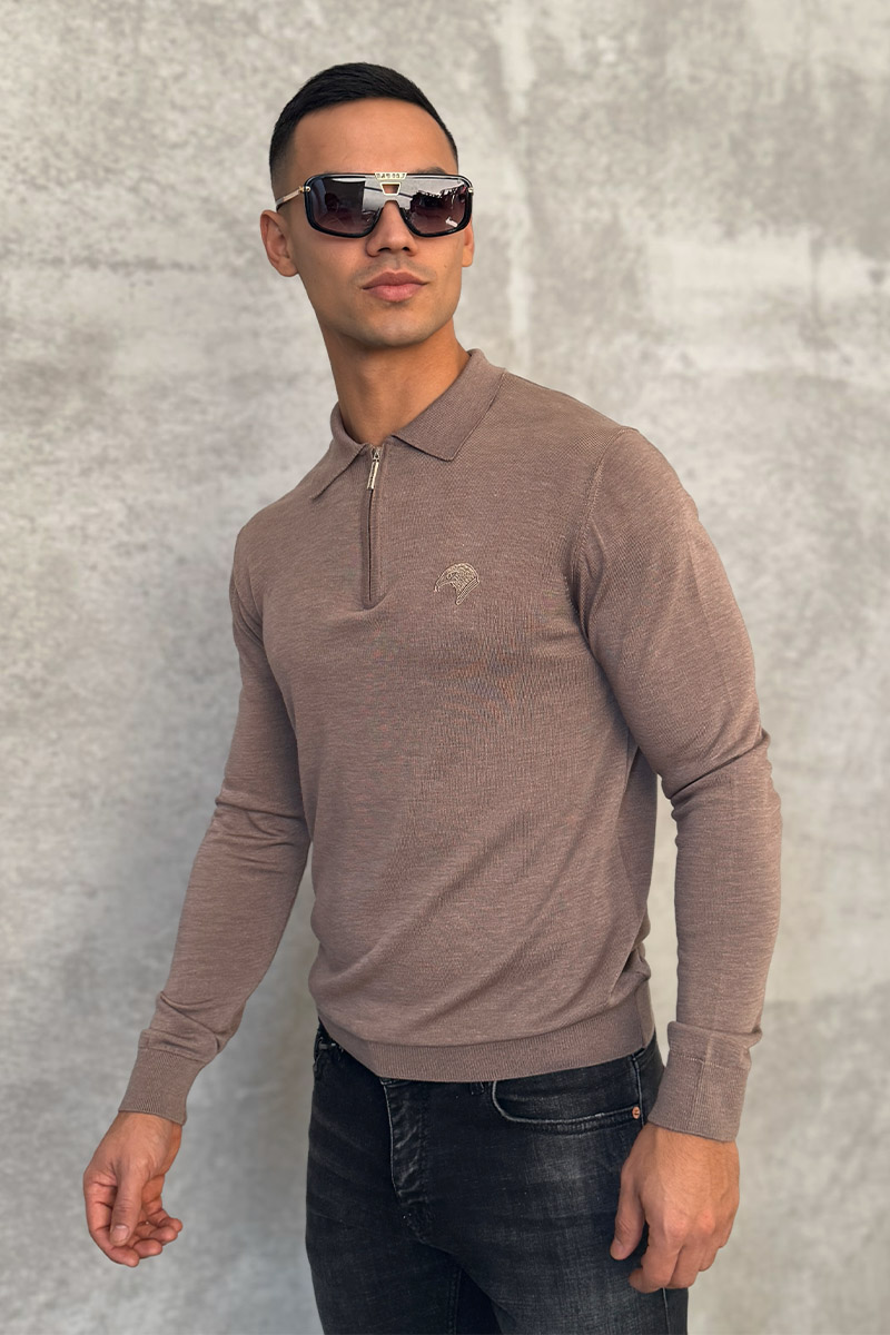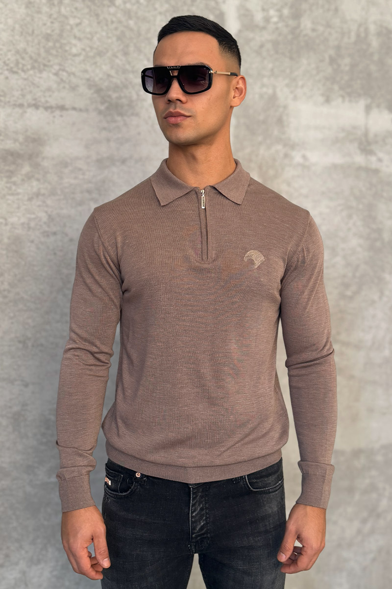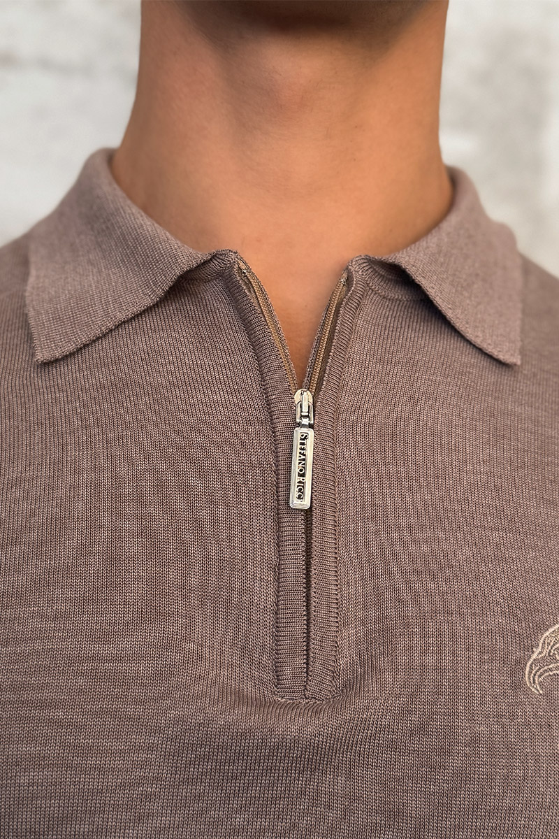 Бежевое поло с длинным рукавом Stefano Ricci zip-up