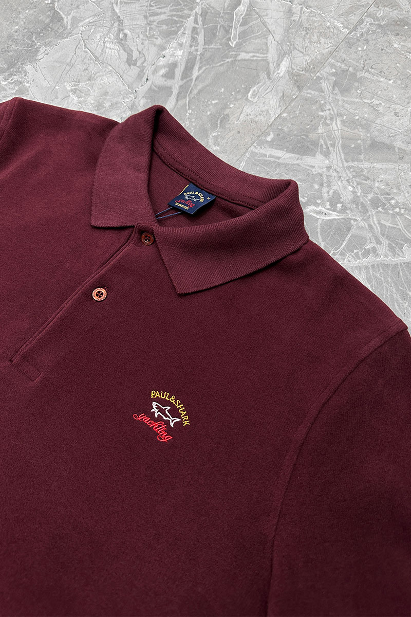 Бордовое поло с длинным рукавом Paul & Shark