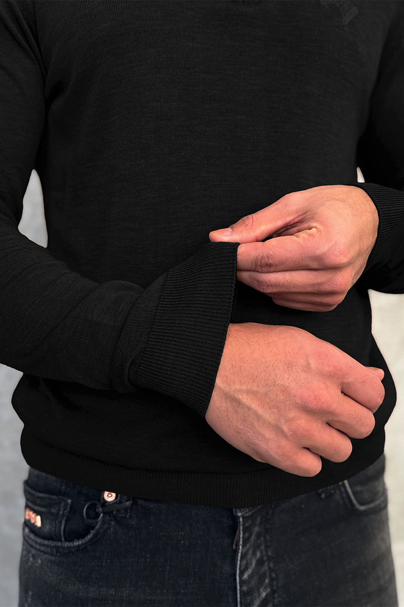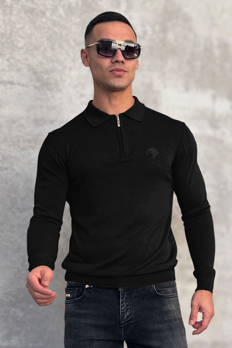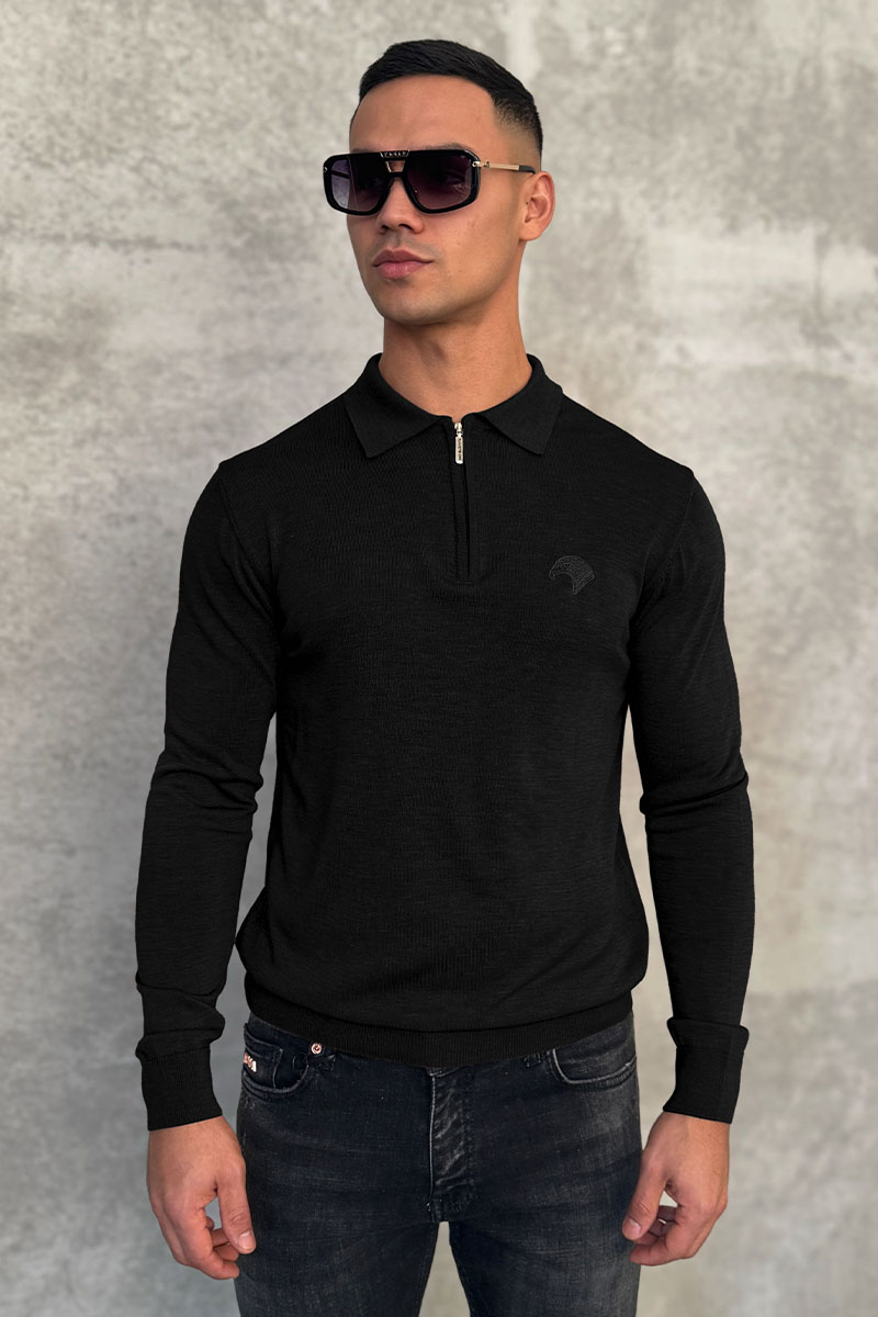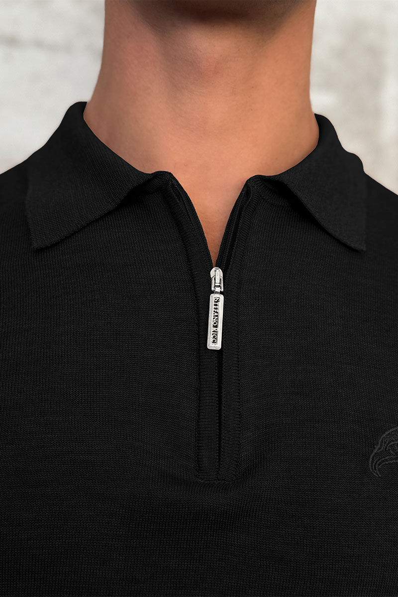 Чёрное поло с длинным рукавом Stefano Ricci zip-up