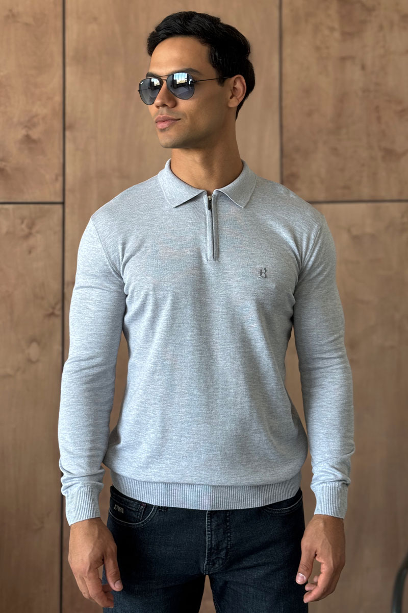 Поло с длинным рукавом Brioni zip-neck - Grey