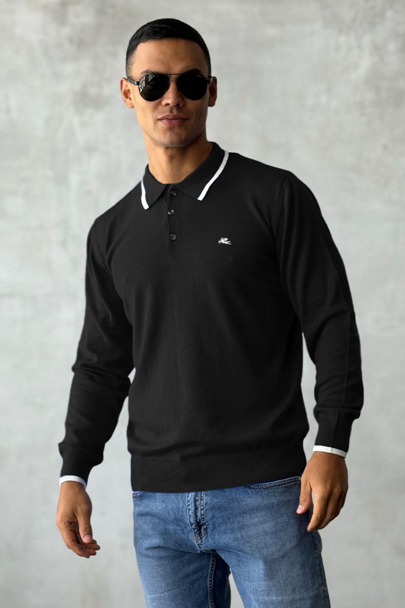 Поло с длинным рукавом Etro Pegaso logo - Black