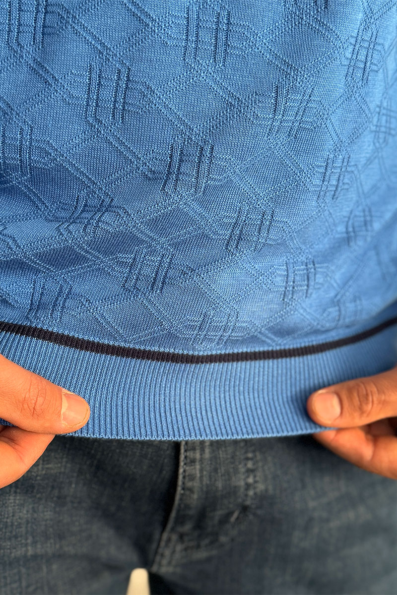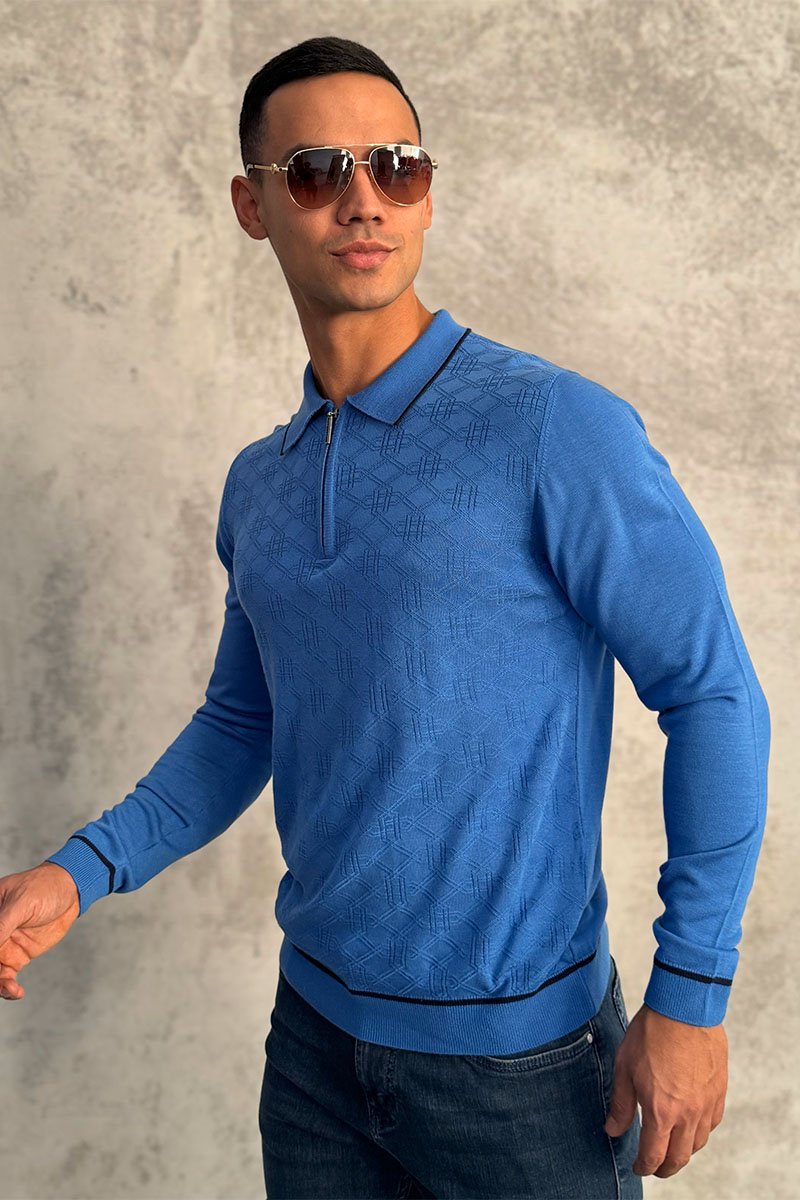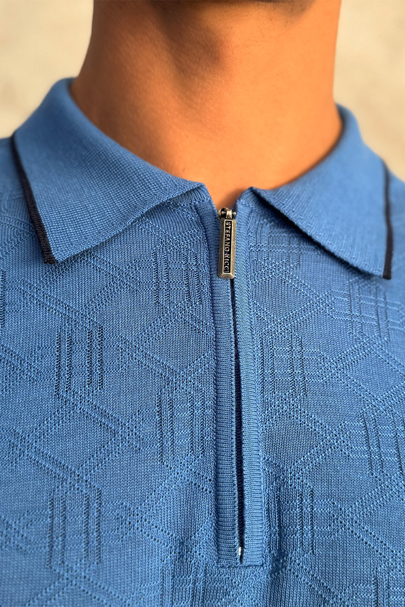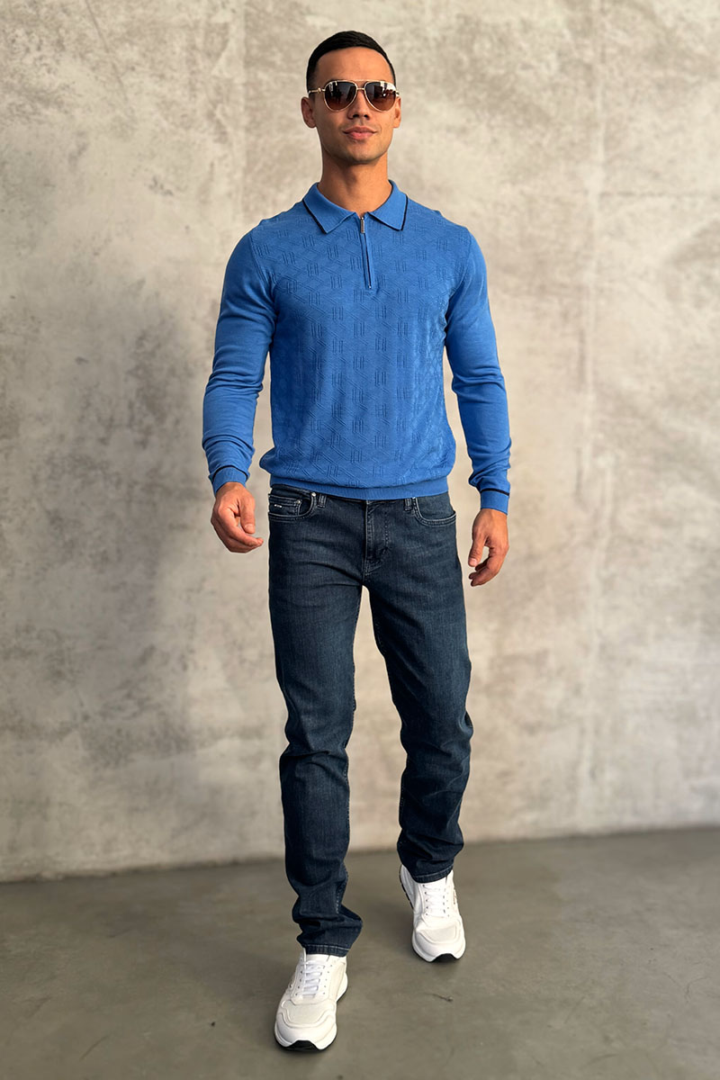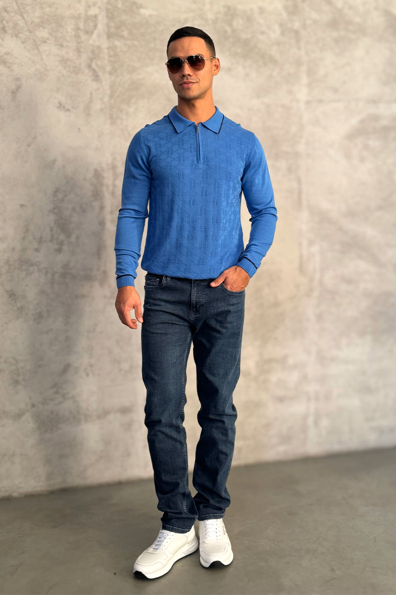 Синее поло с длинным рукавом Stefano Ricci zip-up