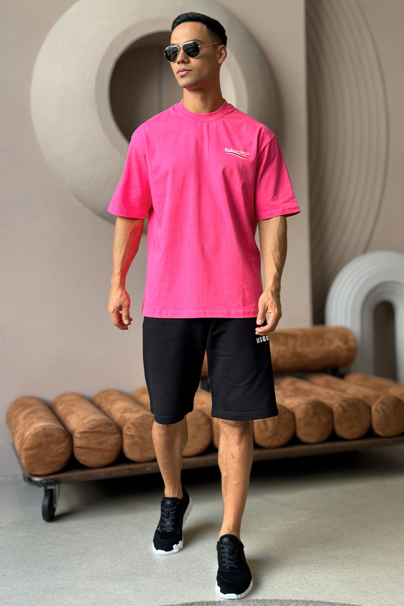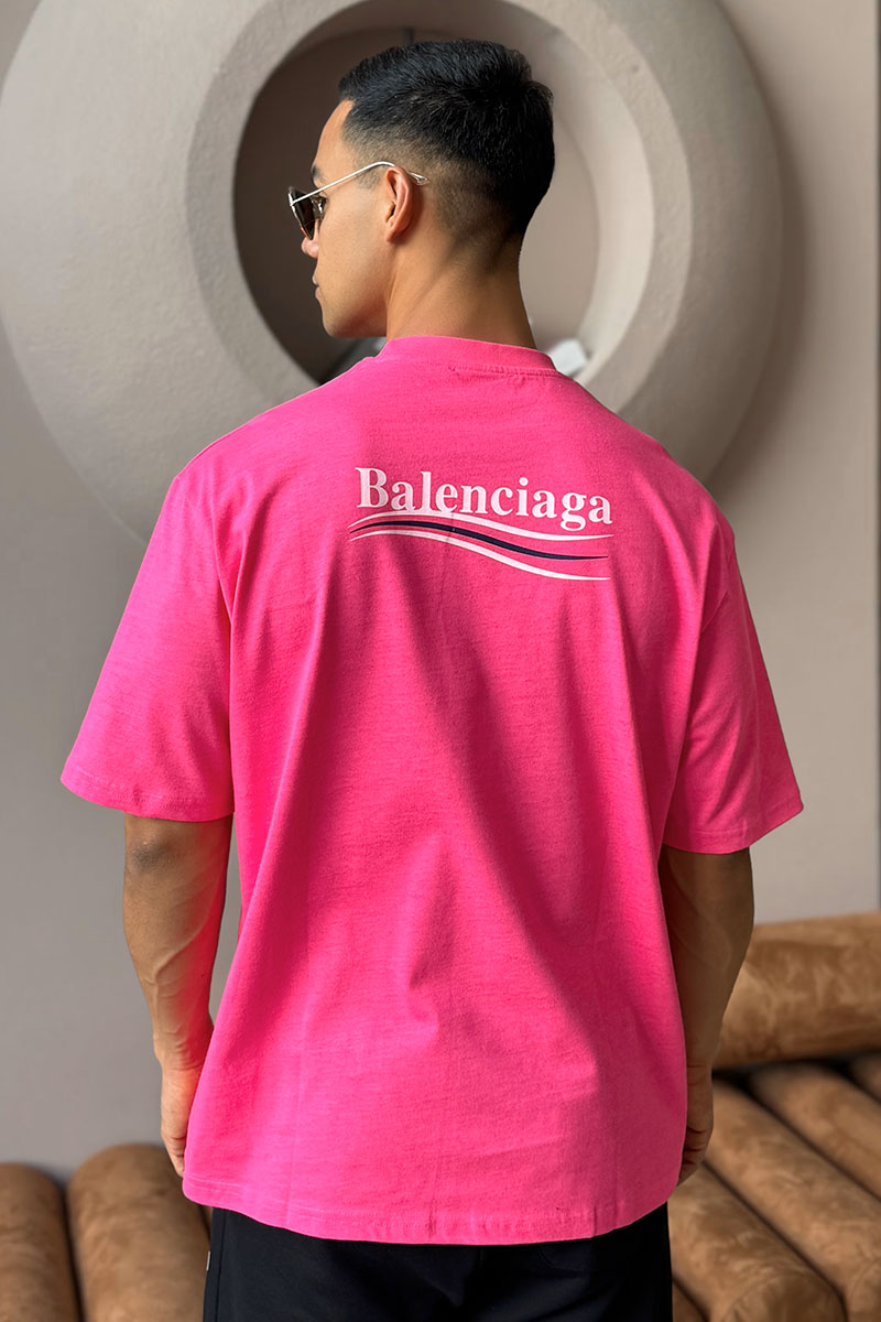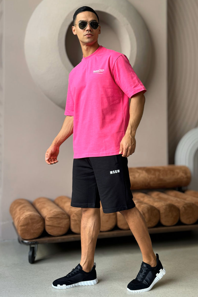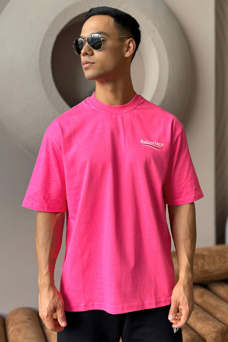 Мужская оверсайз футболка Balenciaga розового цвета