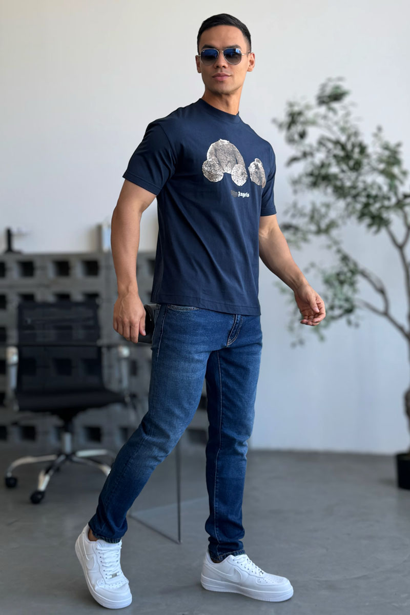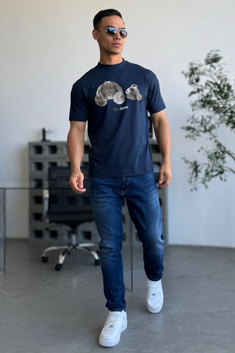 Мужская оверсайз футболка Palm Angels "Teddy Bear" - Navy