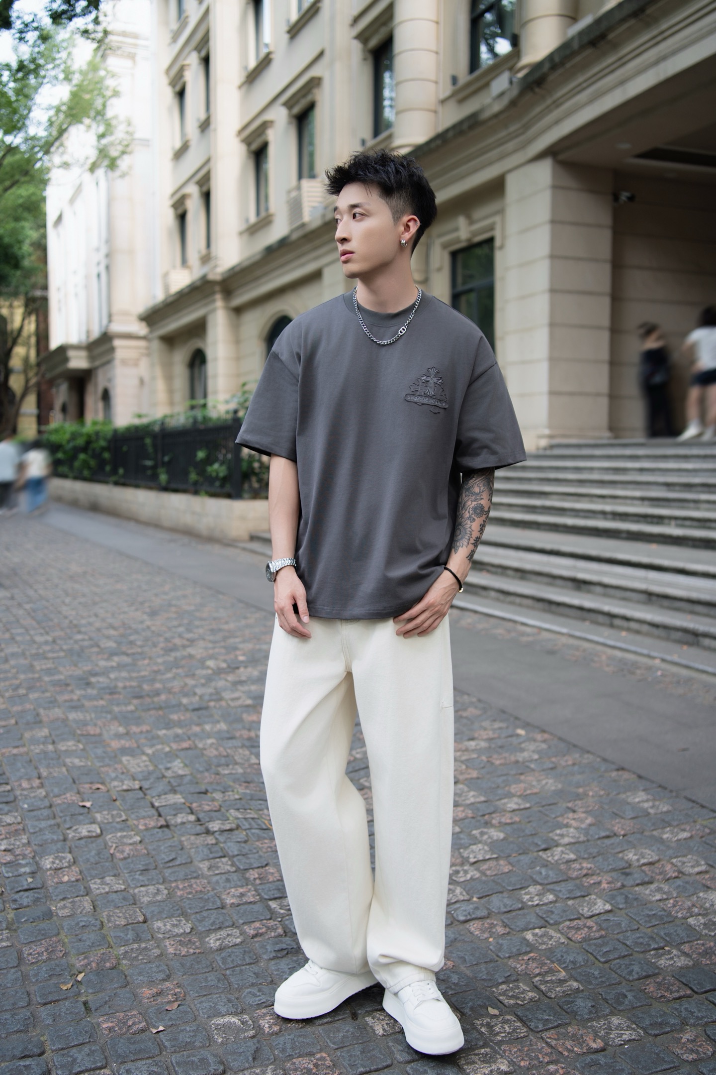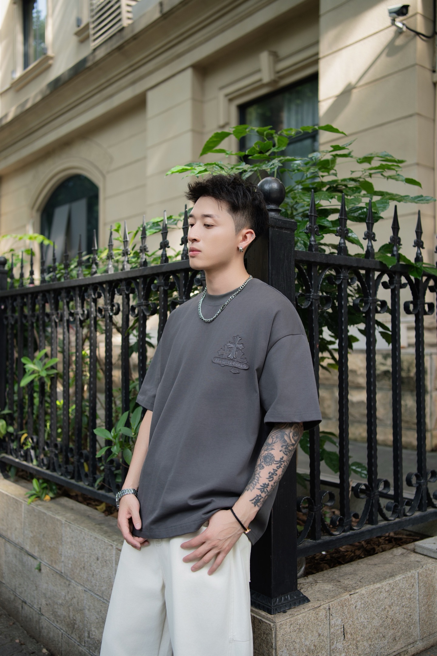 Серая оверсайз футболка Chrome Hearts Premium