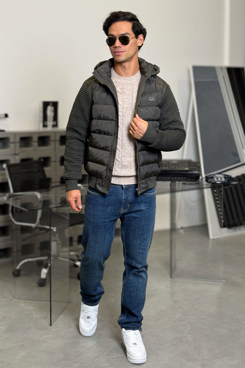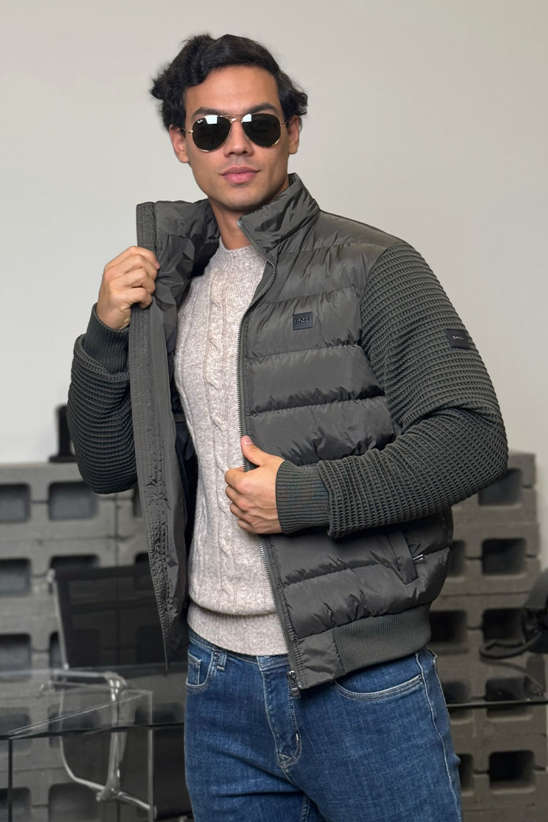 Зелёная куртка Hugo Boss с вязаными рукавами