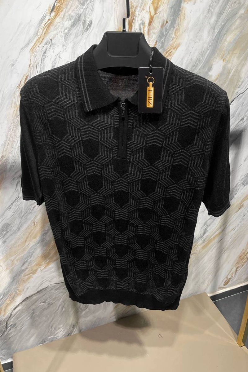 Мужское поло чёрного цвета Zilli zip neck