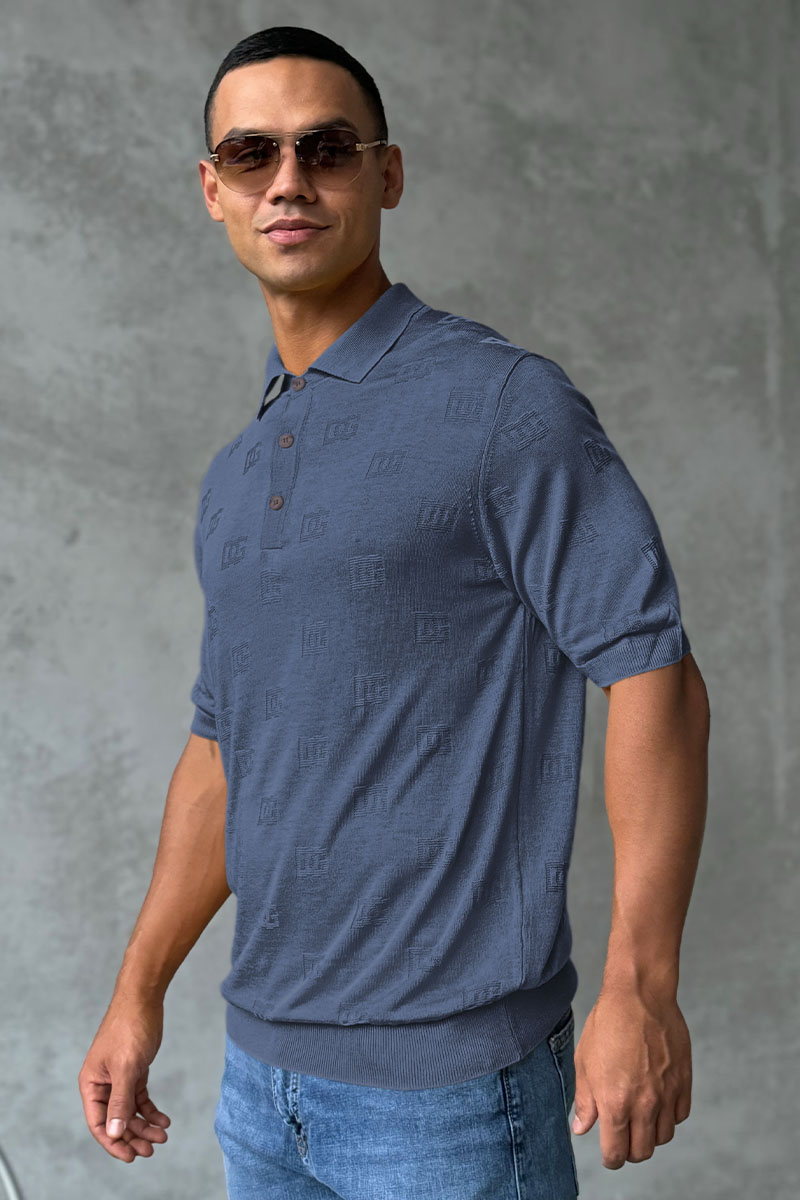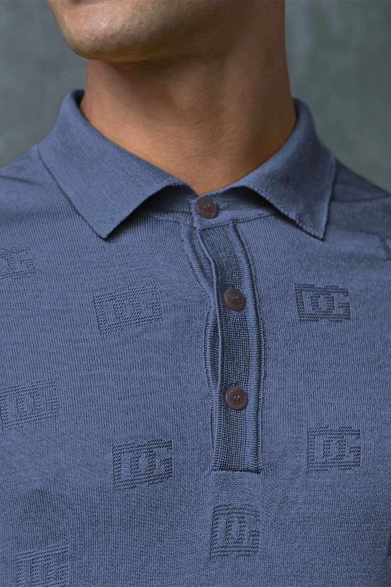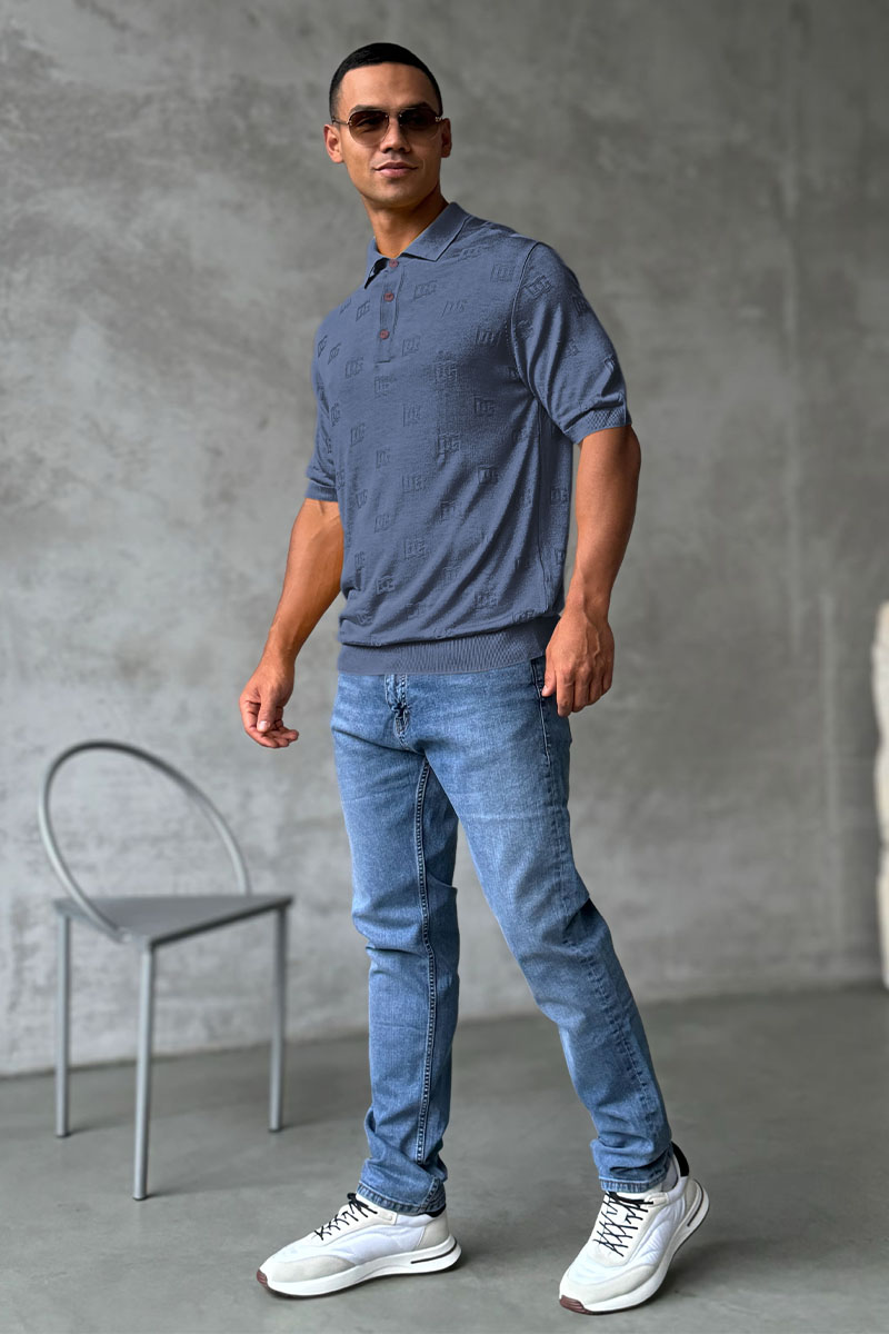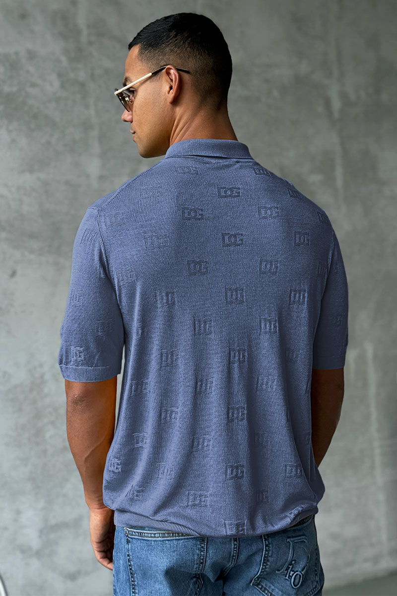 Мужское поло Dolce & Gabbana monogram all-over - Indigo