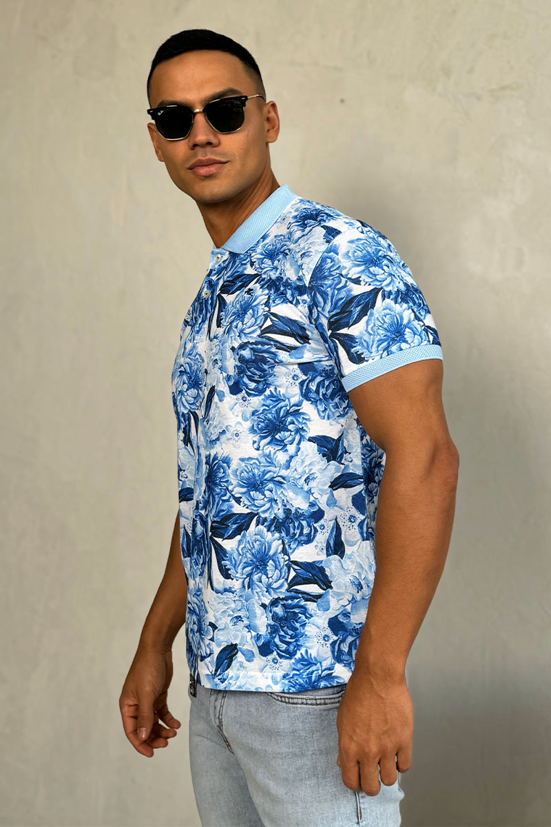 Мужское поло Etro "Floral" - Blue