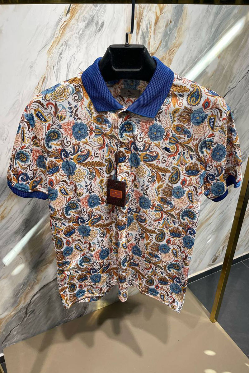 Мужское поло Etro "Paisley" - White / Orange