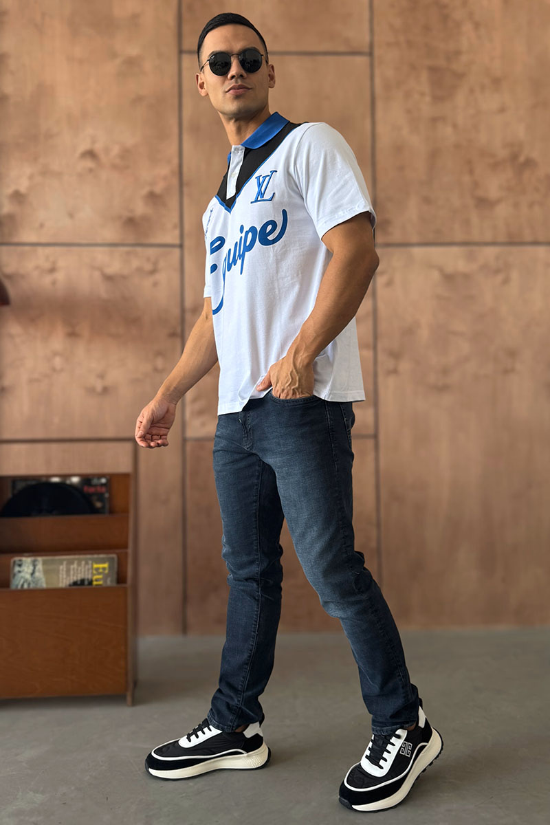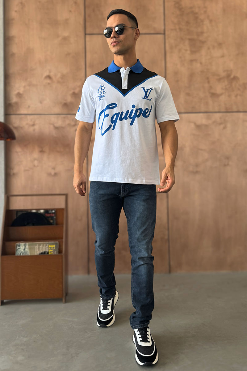 Мужское поло Louis Vuitton Launch The Equipe - White / Blue