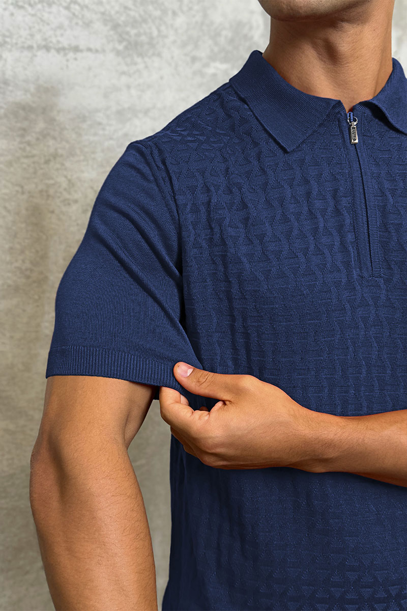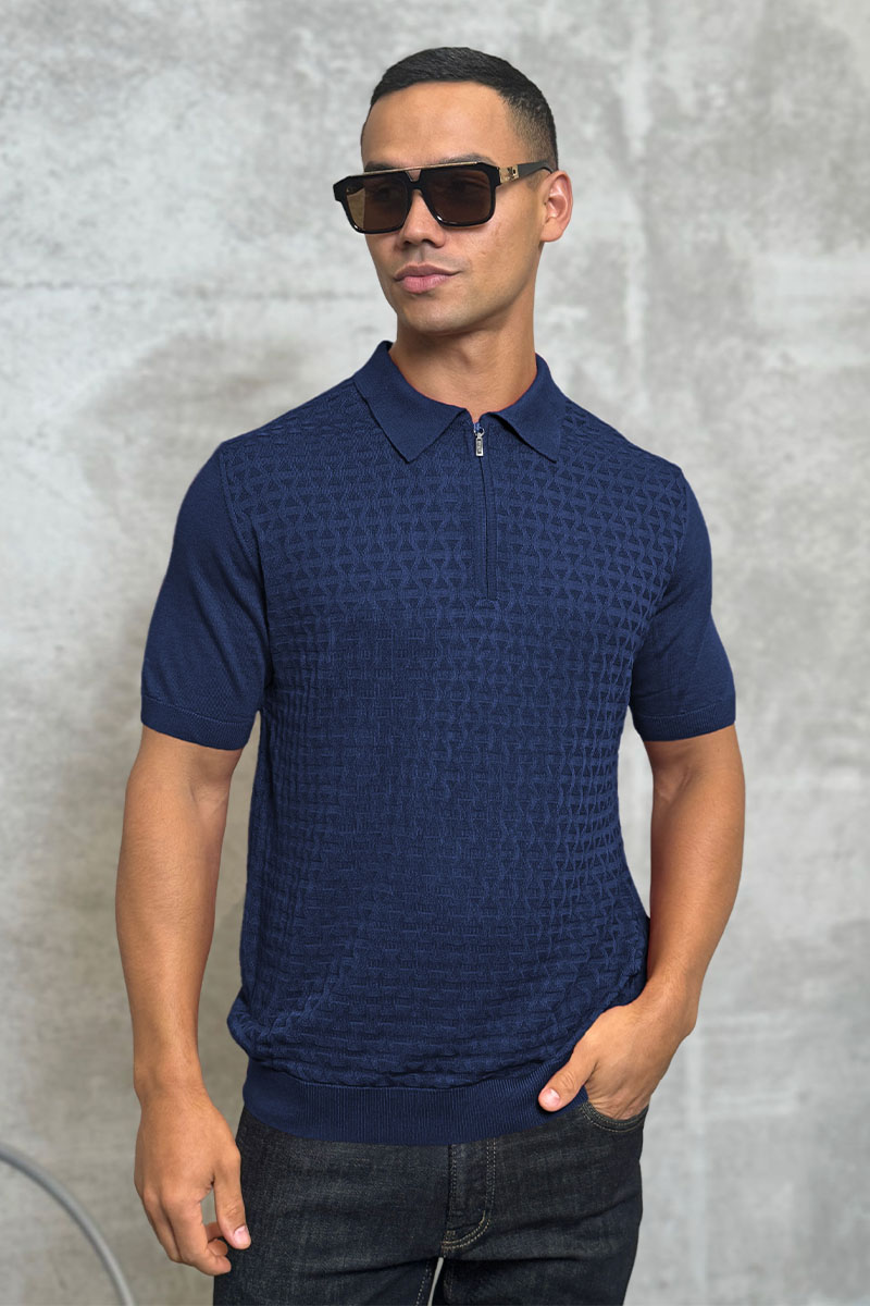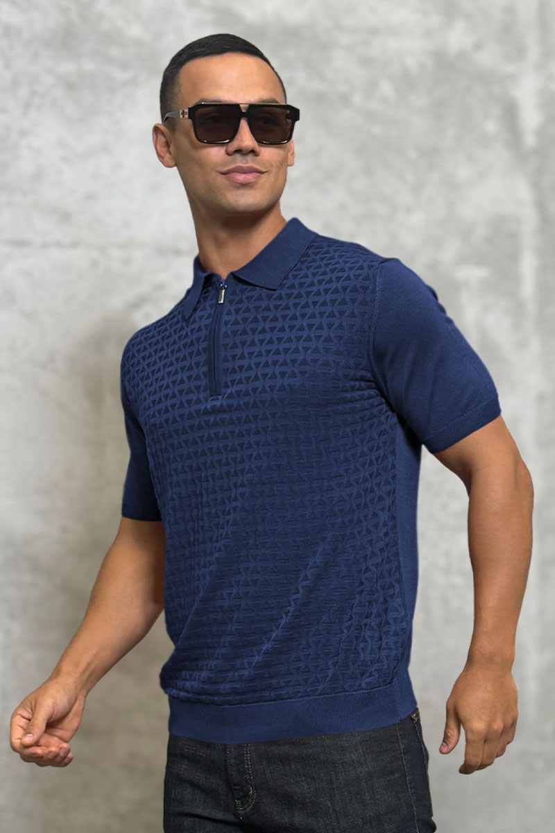 Мужское поло синего цвета Zilli zip neck