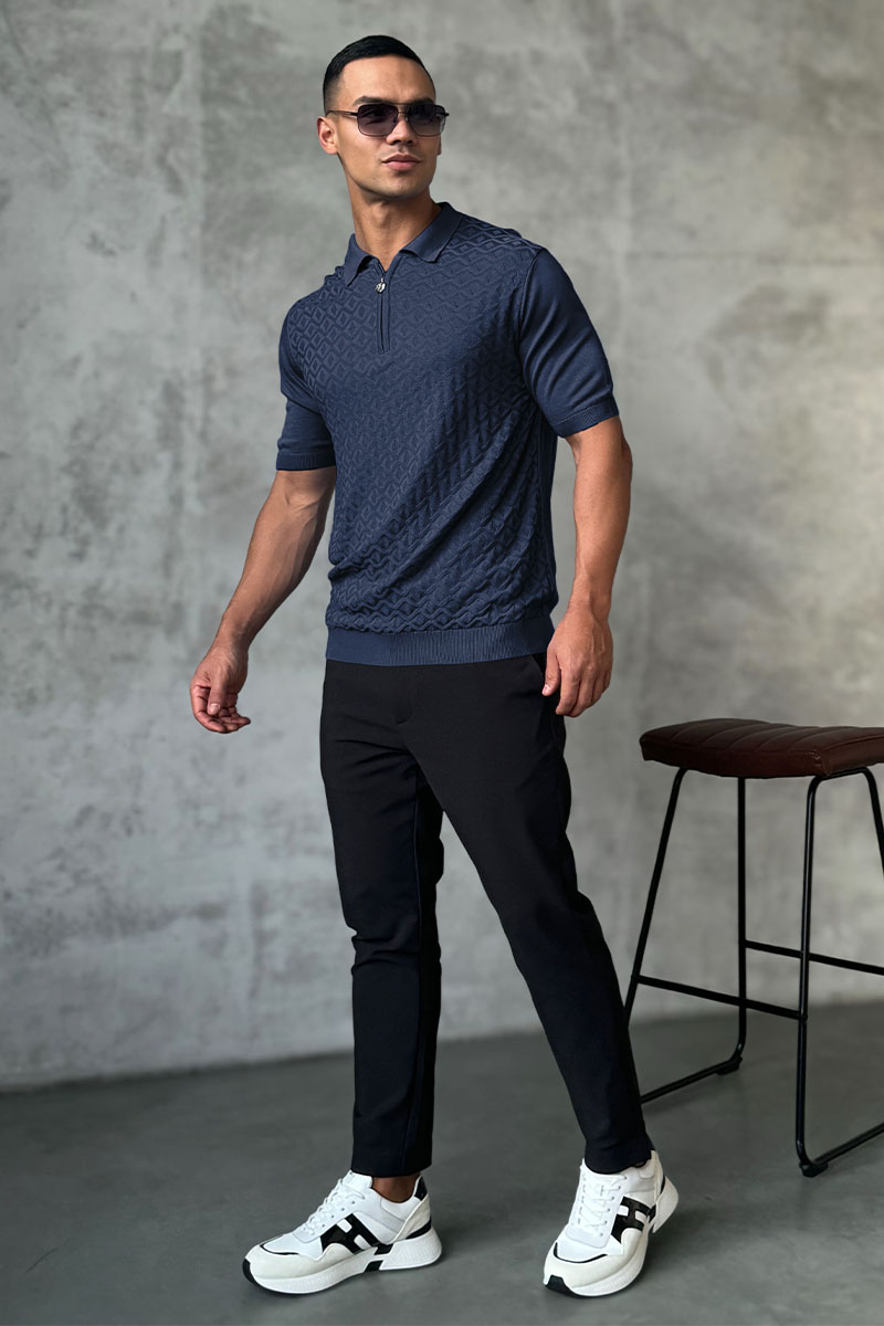 Мужское поло Stefano Ricci тёмно-синего цвета