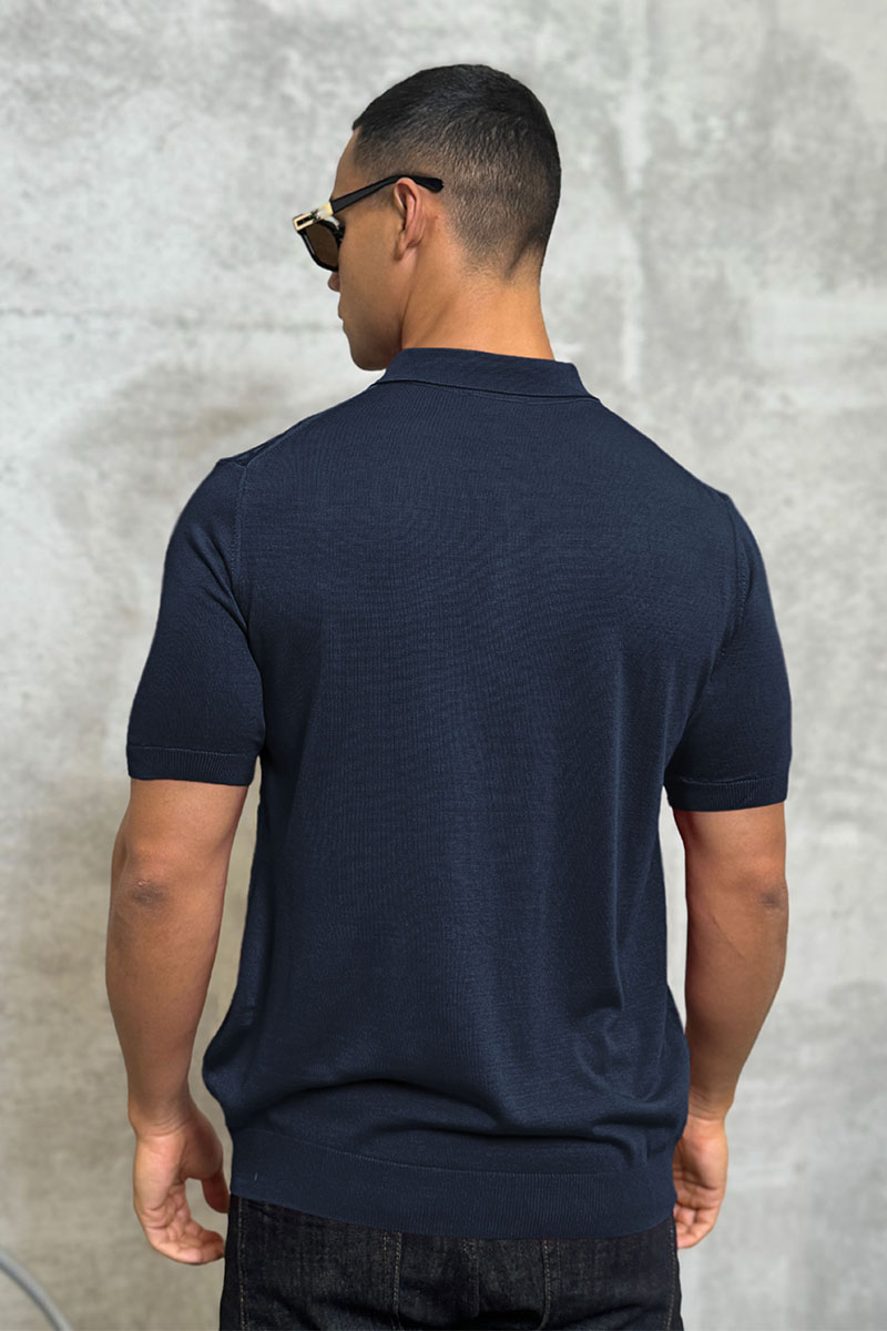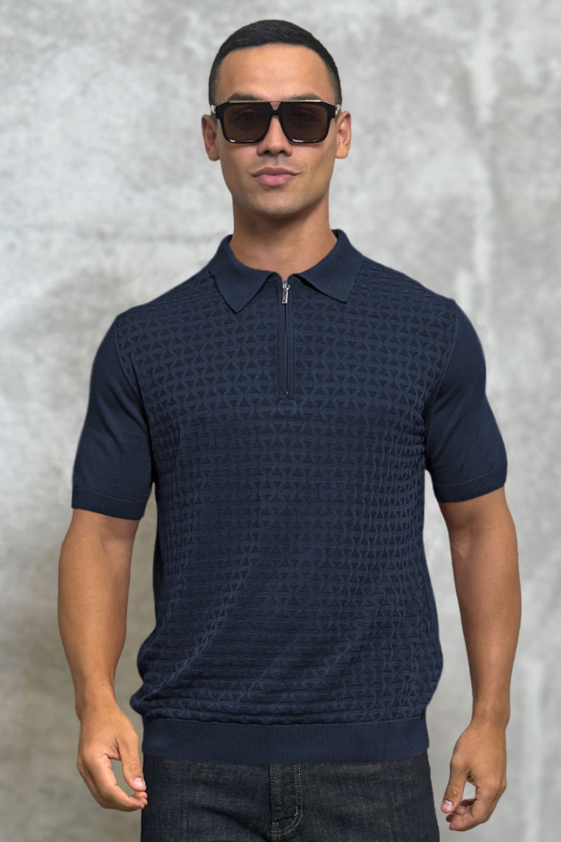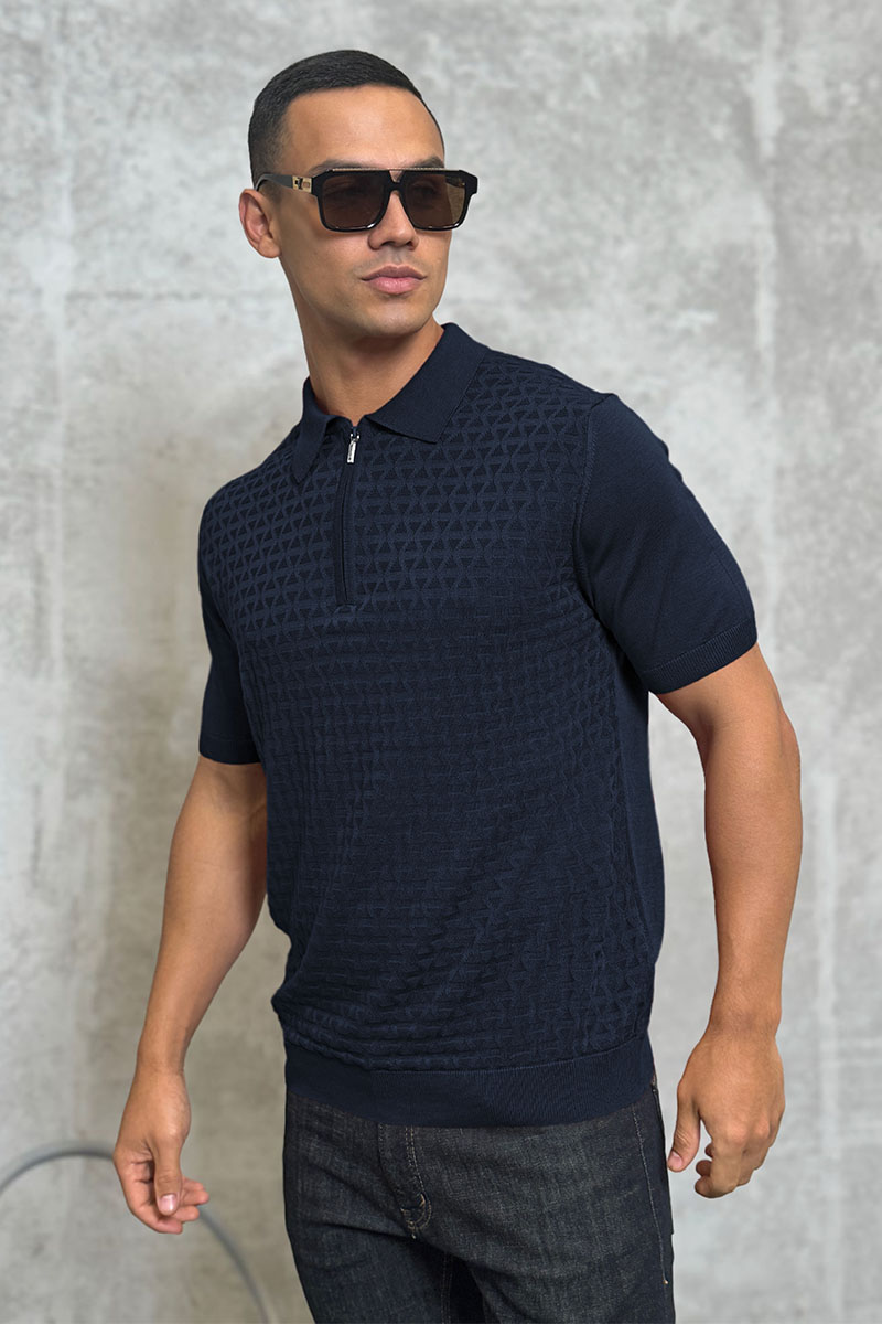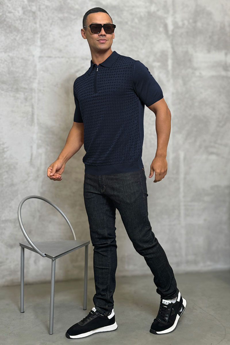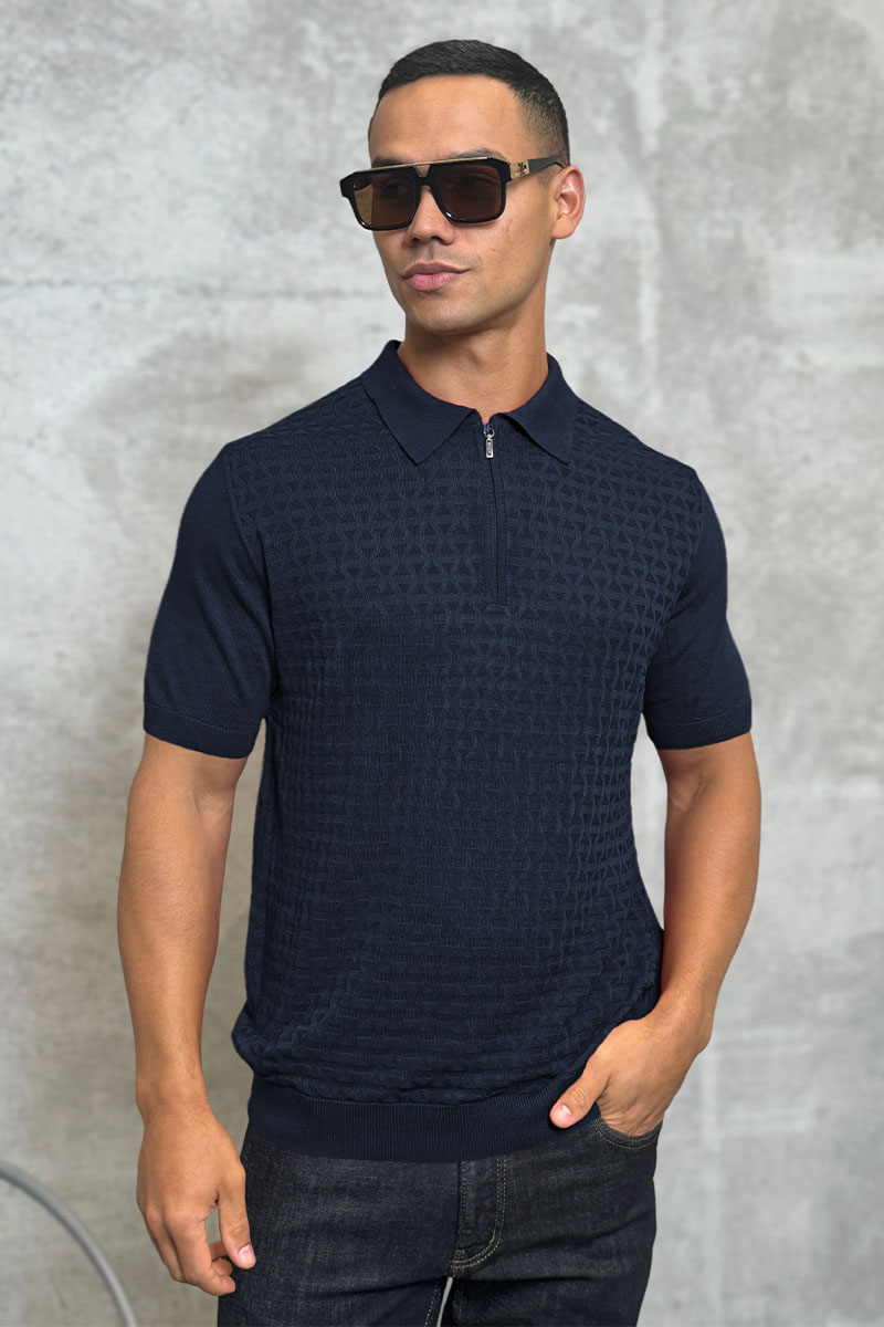Мужское поло тёмно-синего цвета Zilli zip neck