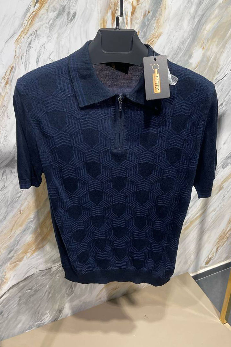 Мужское поло тёмно-синего цвета Zilli zip neck