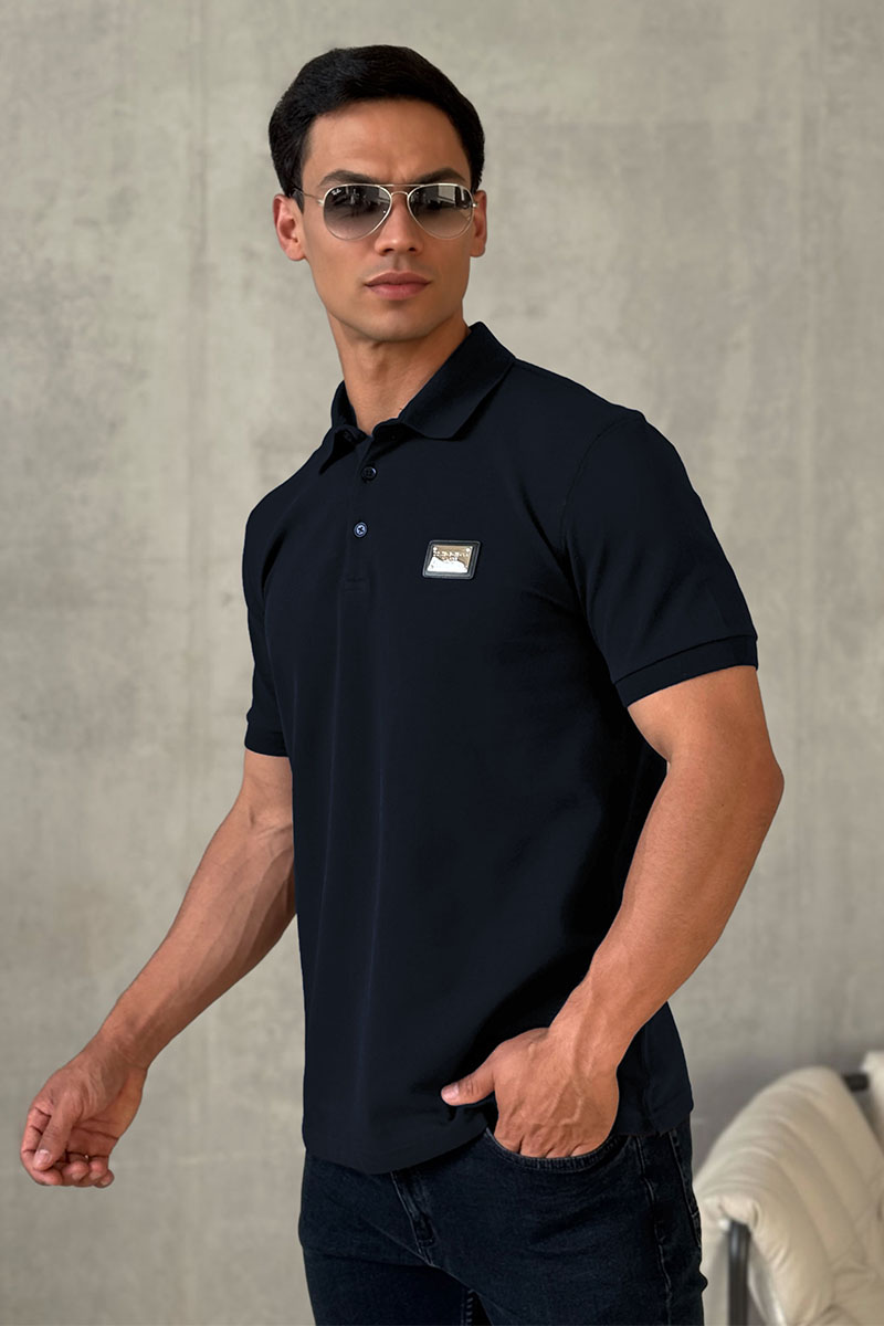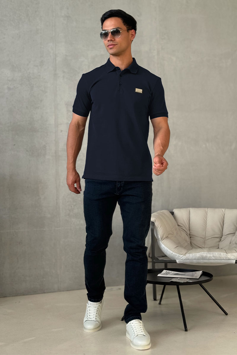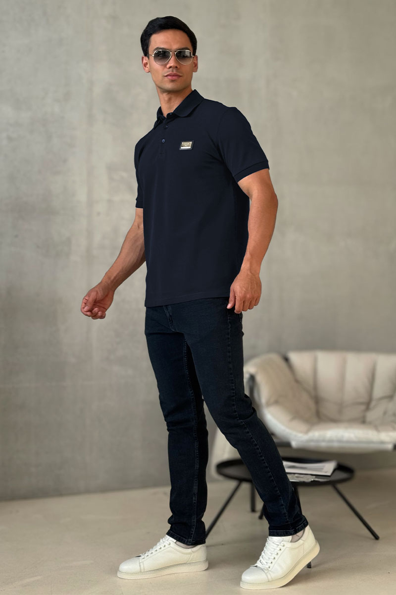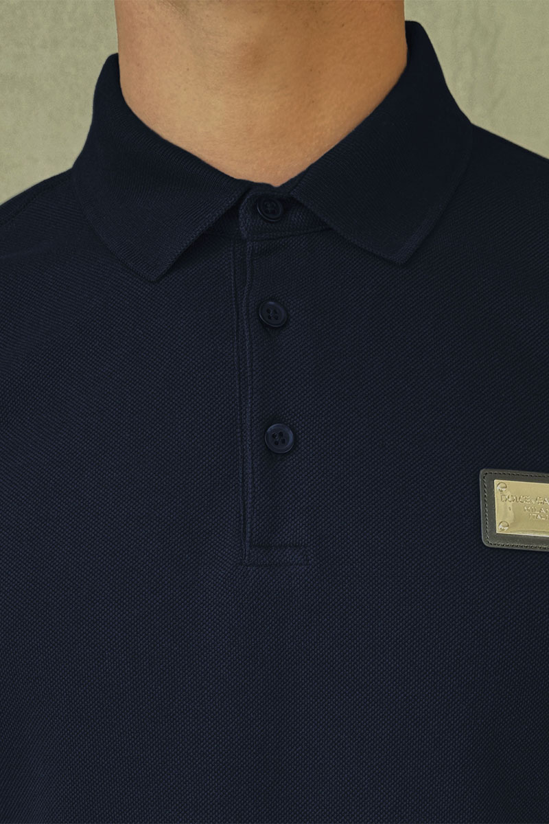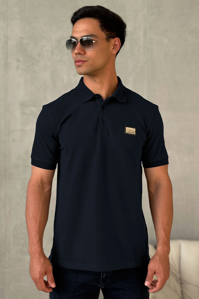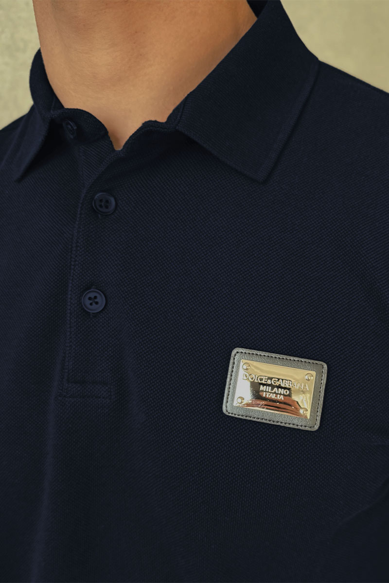 Мужское тёмно-синее поло Dolce & Gabbana logo-plaque