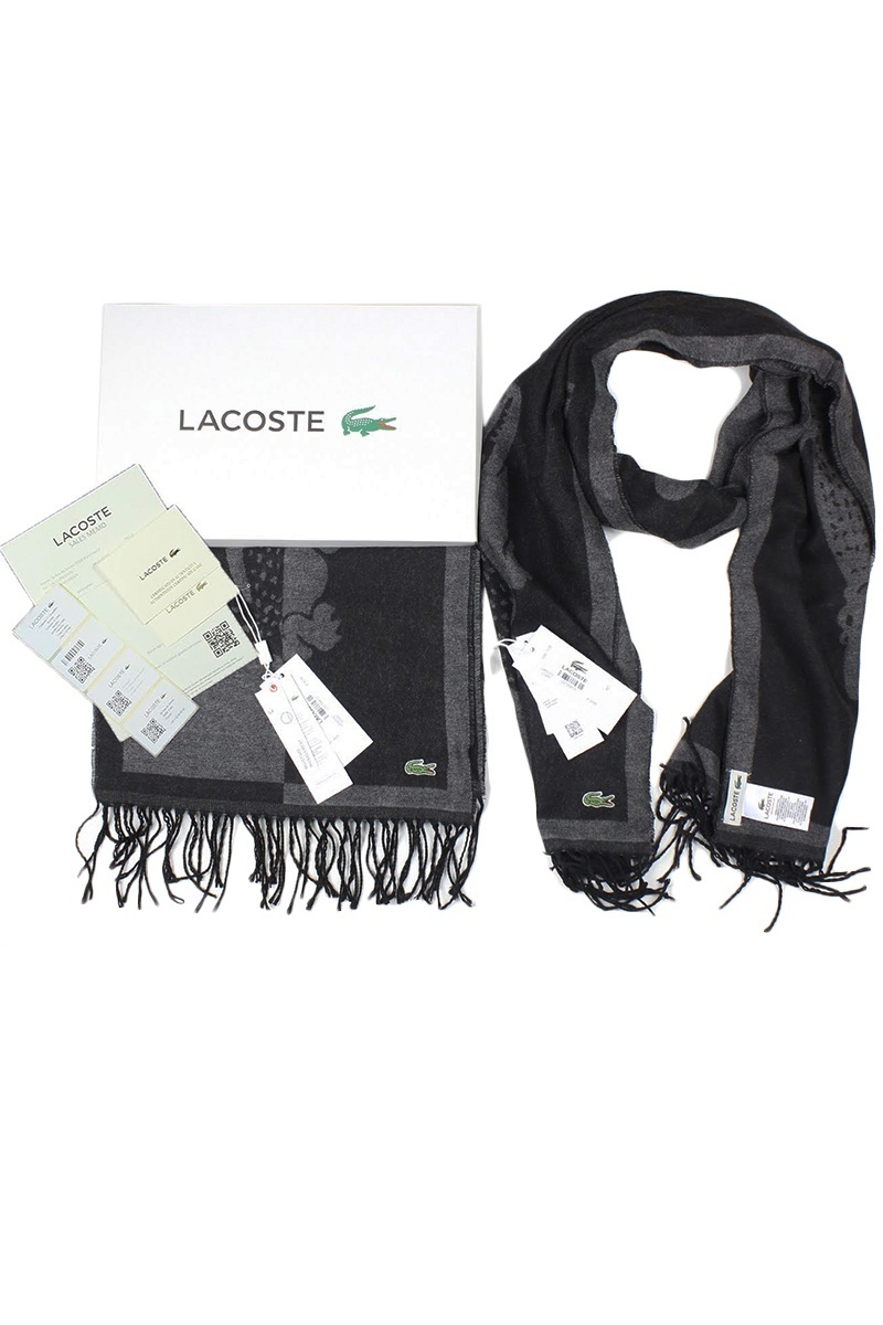 Мужской чёрный шарф Lacoste logo-patch 185х35 см