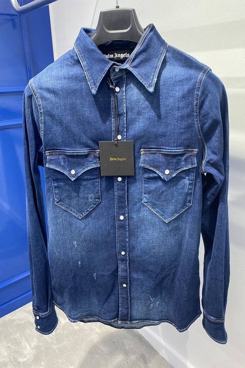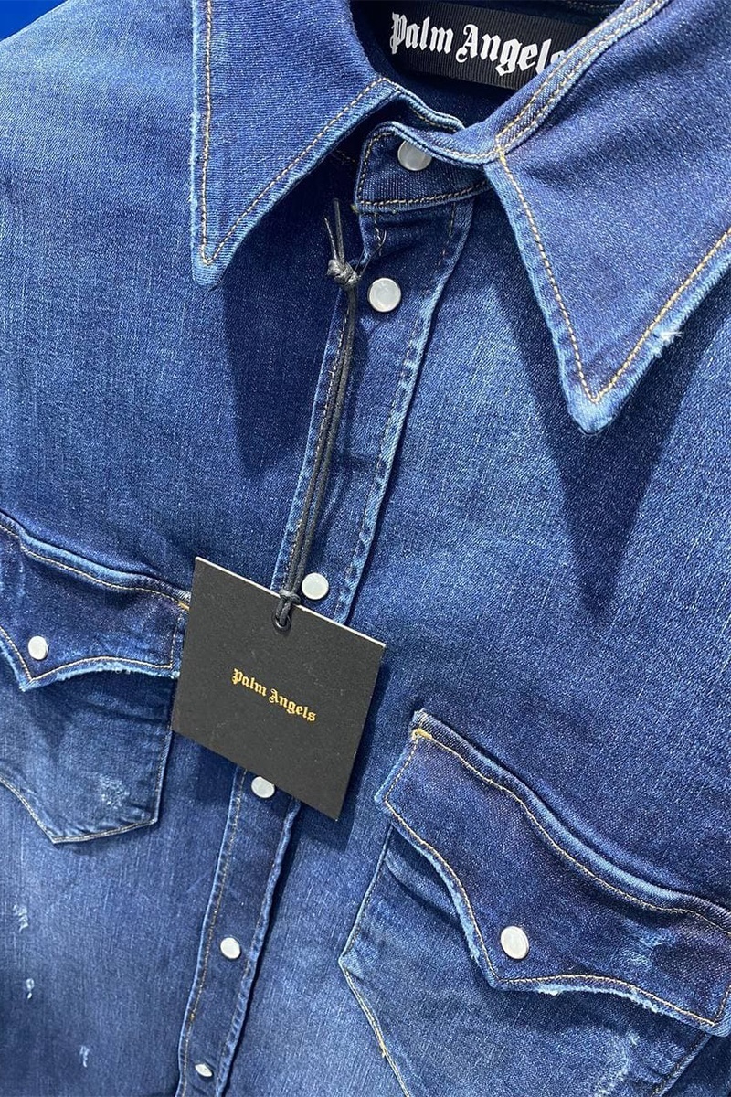 Мужская джинсовая рубашка Palm Angels синего цвета