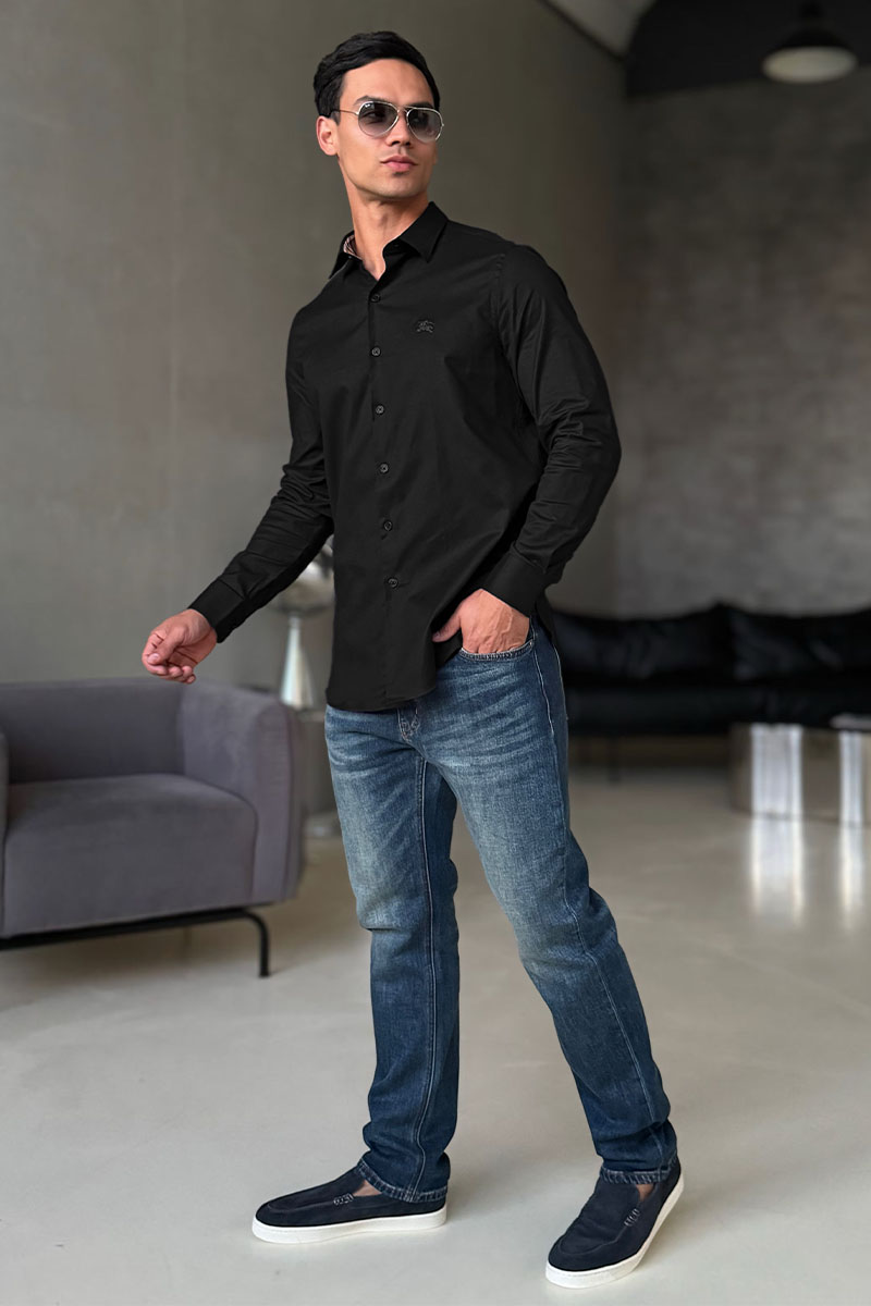 Мужская рубашка Burberry logo-embroidered - Black