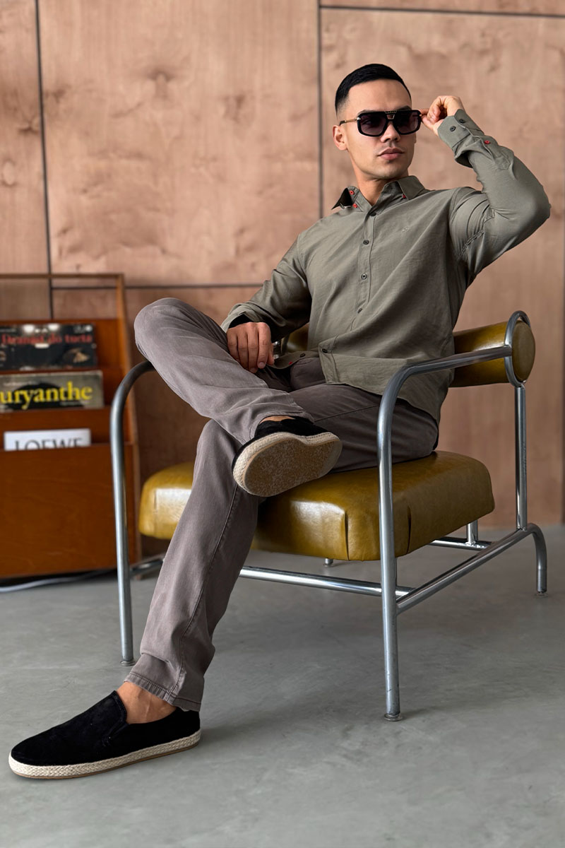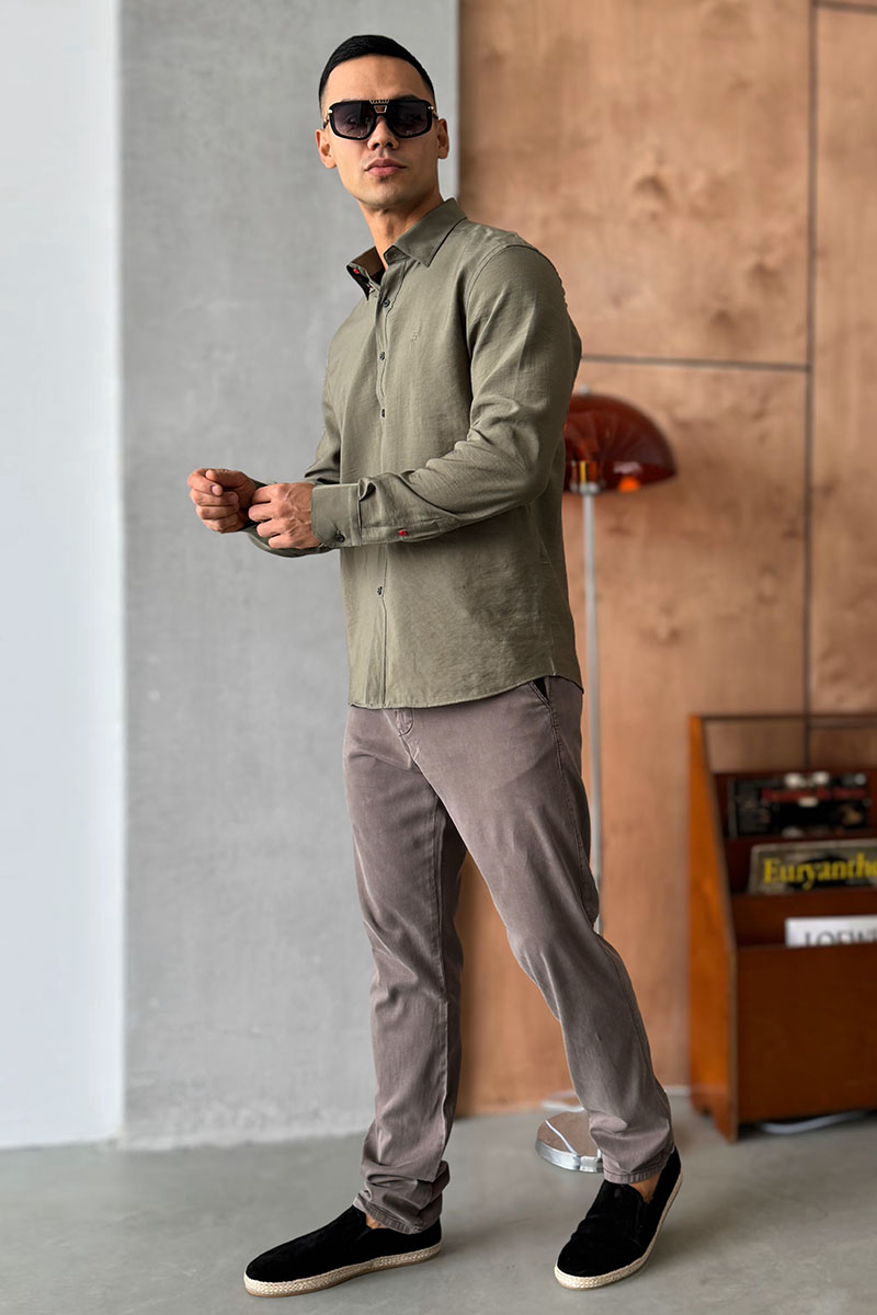 Мужская рубашка Hermes H embroidered - Khaki