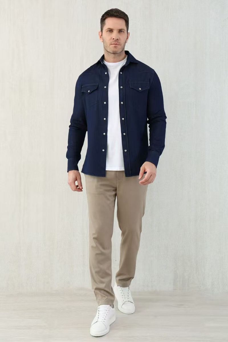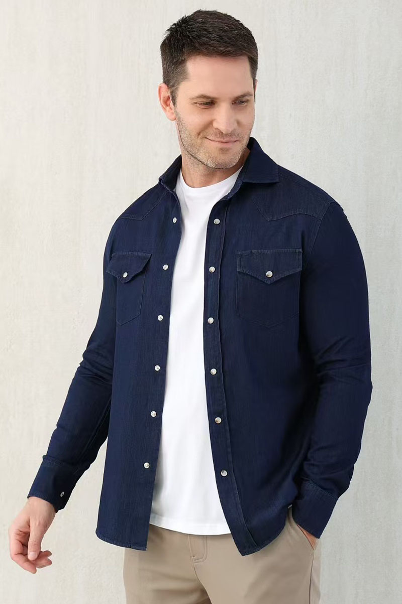 Мужская тёмно-синяя рубашка Brunello Cucinelli Premium