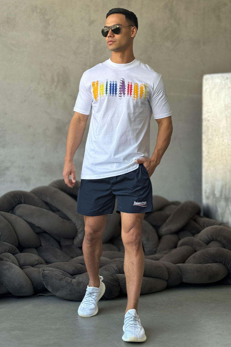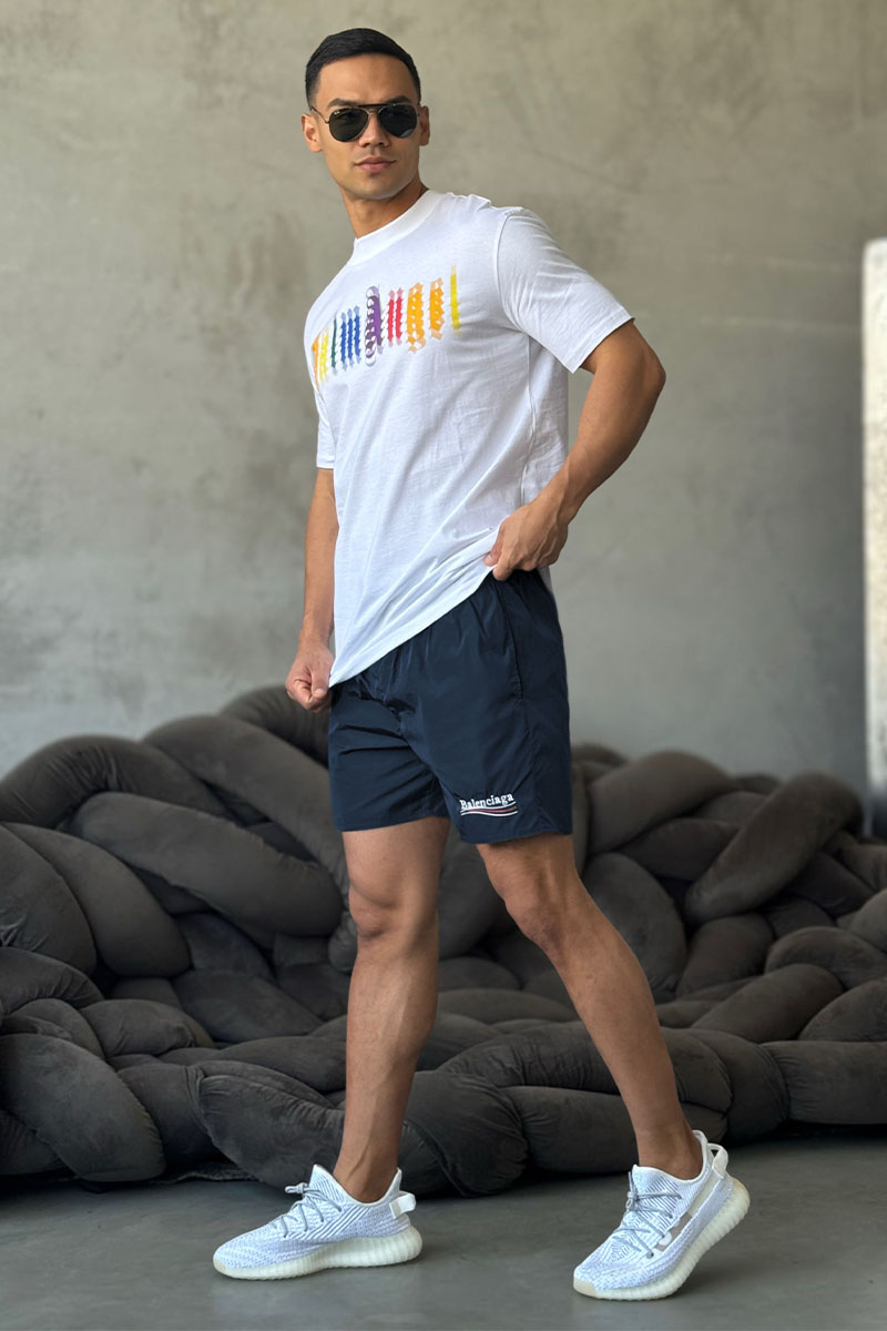 Тёмно-синие шорты Balenciaga Political Campaign logo
