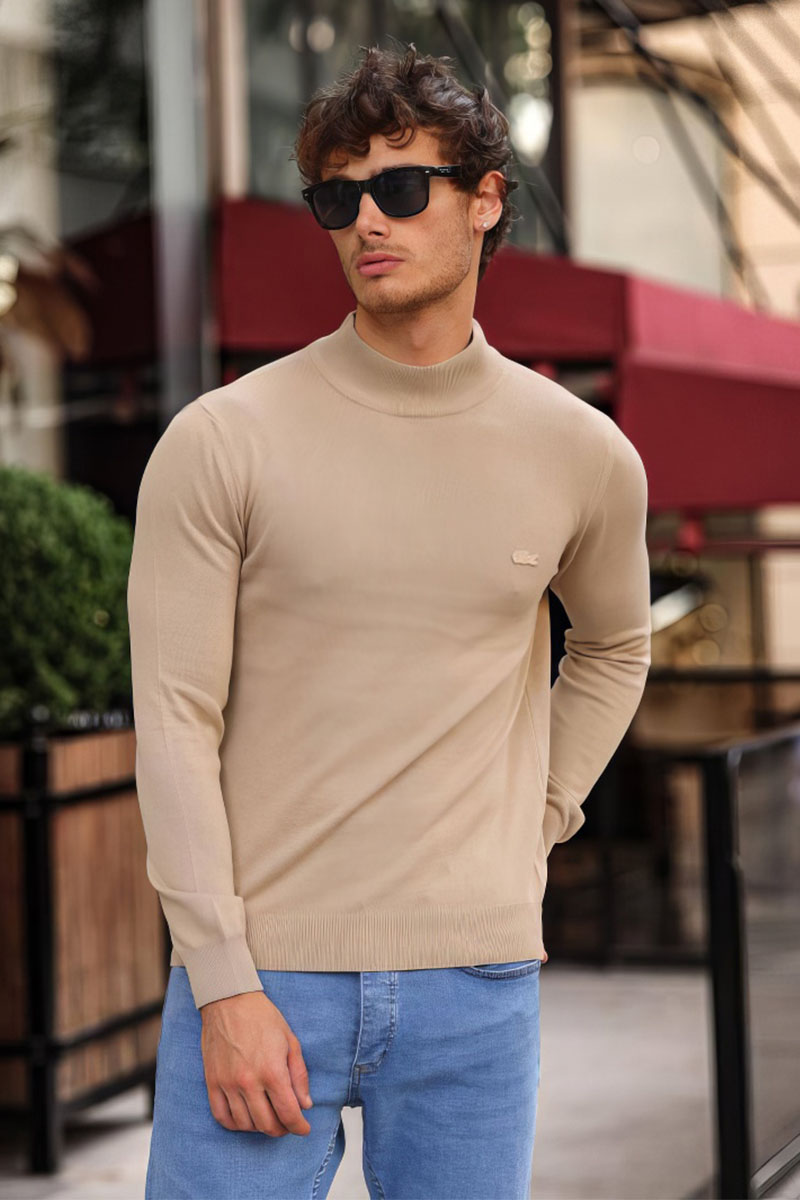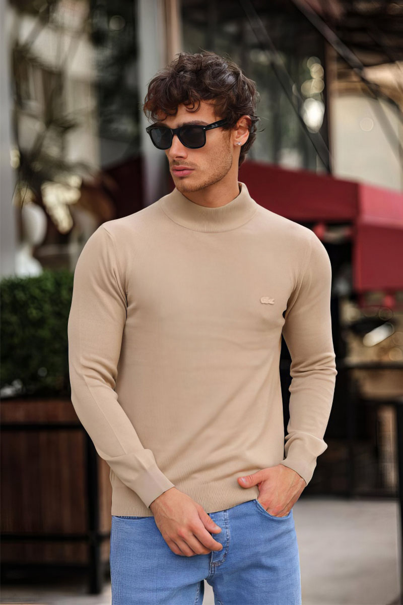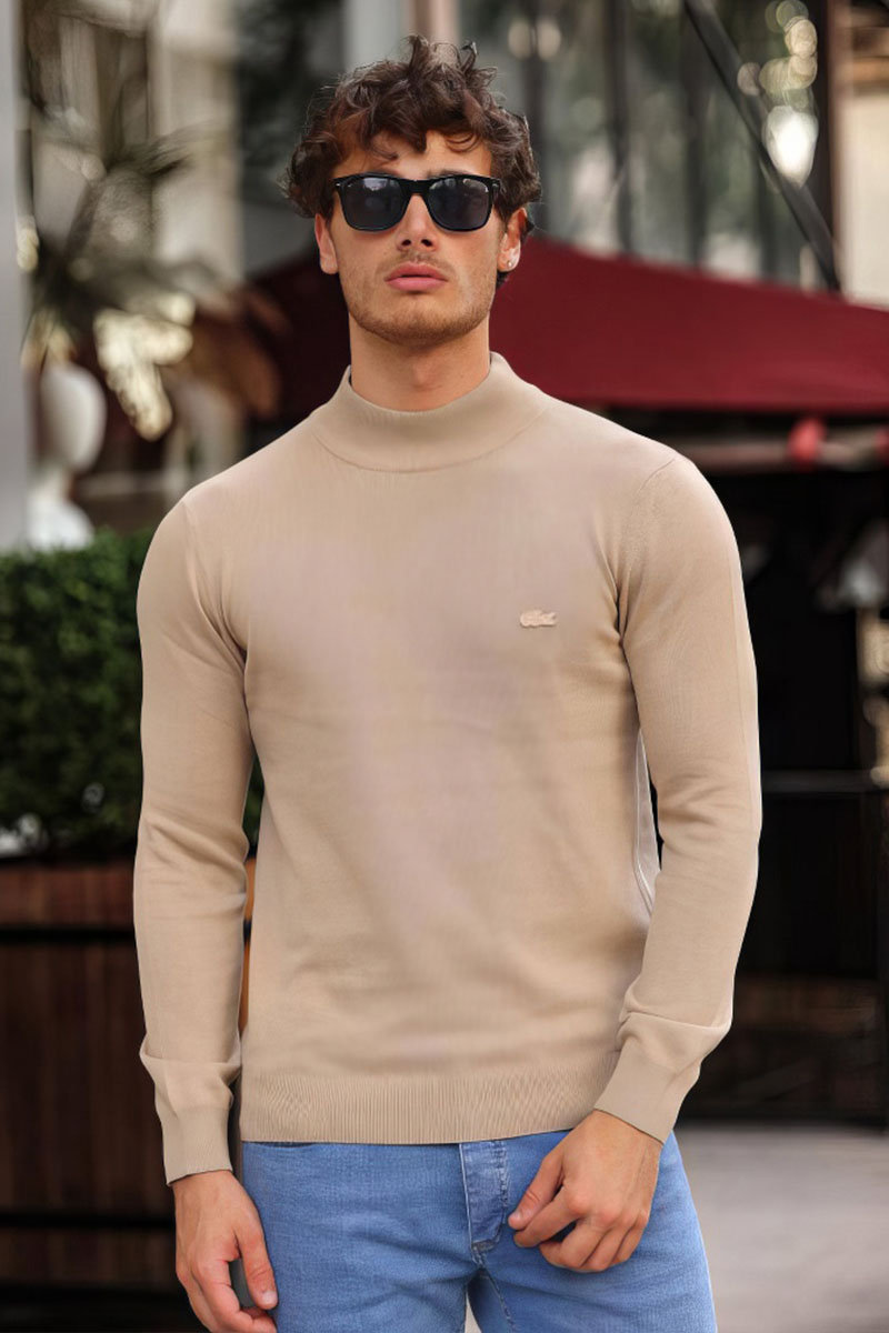 Мужская бежевая водолазка Lacoste logo-patch