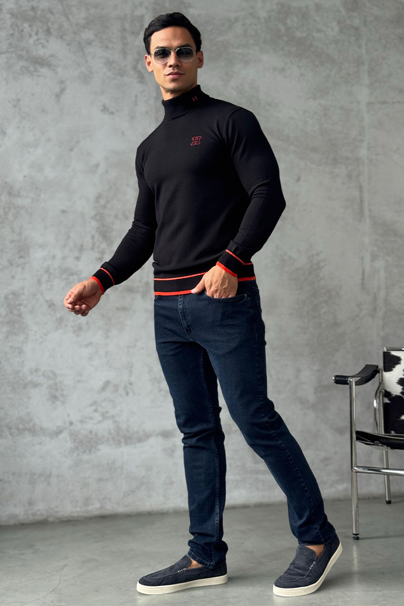 Мужская чёрная водолазка Hermes Premium