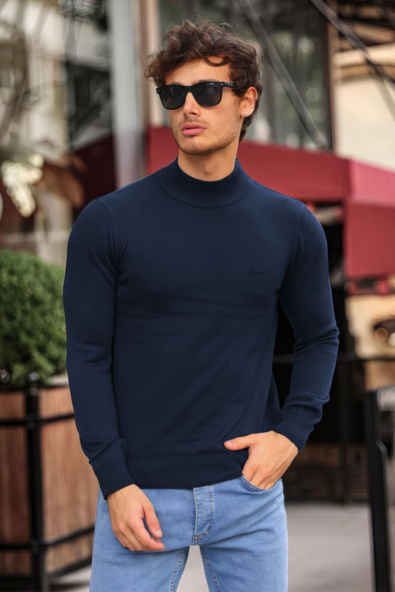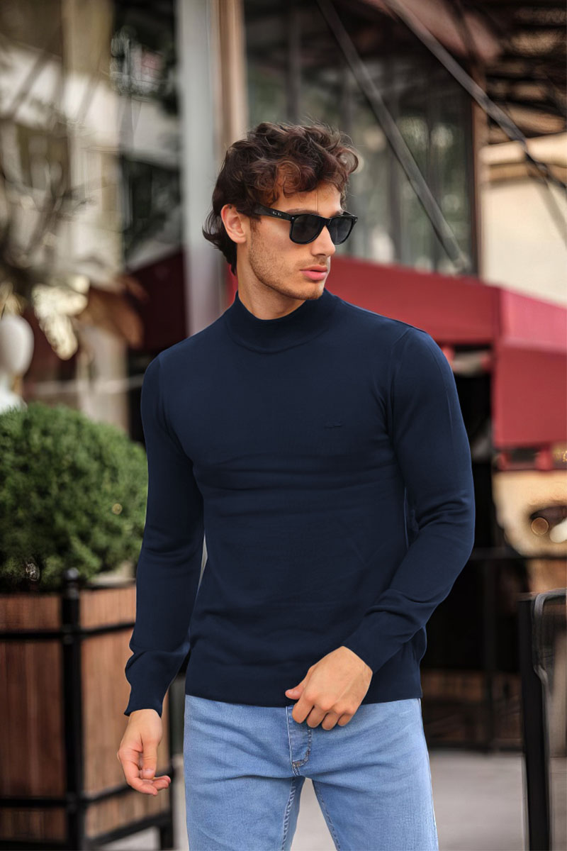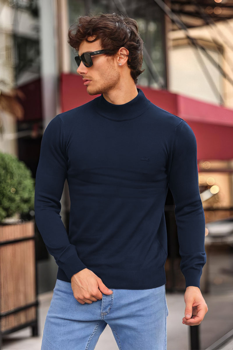 Мужская тёмно-синяя водолазка Lacoste logo-patch
