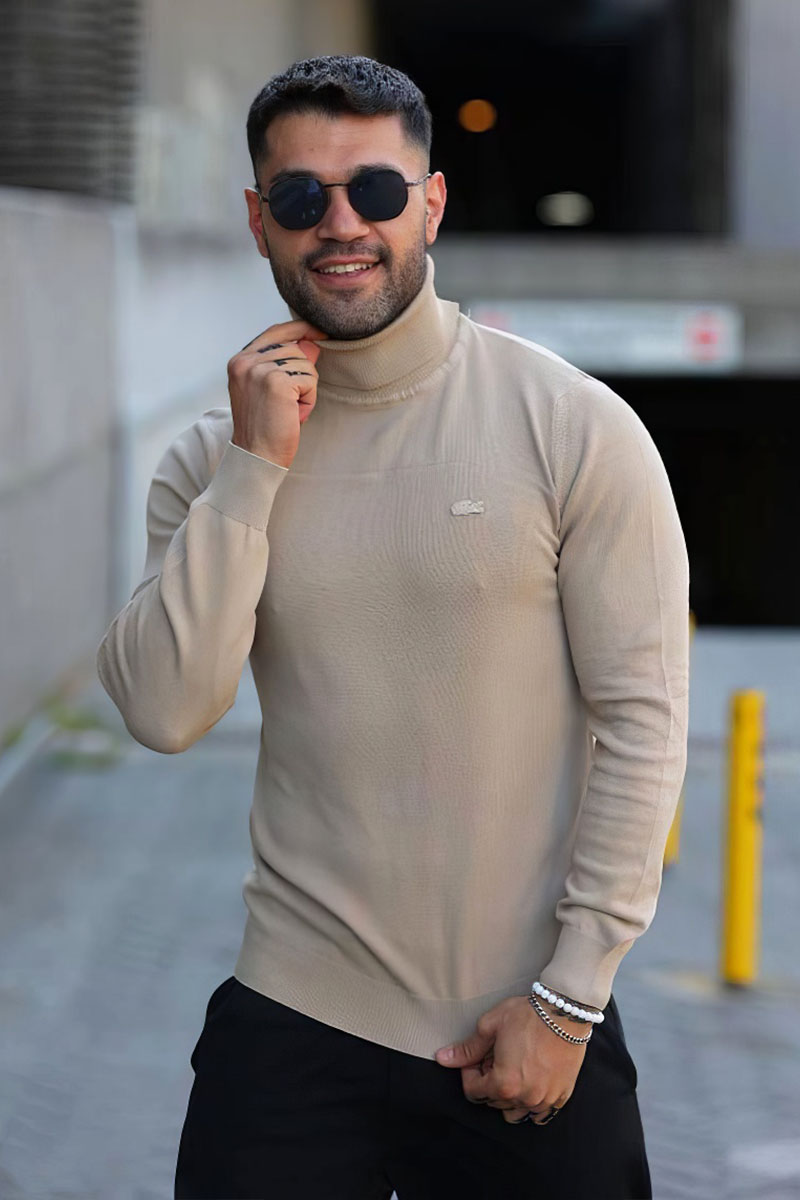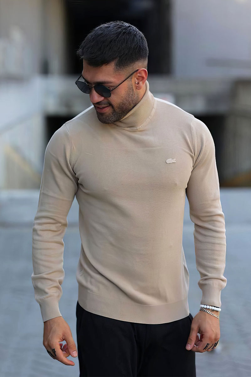 Мужская бежевая водолазка Lacoste logo-patch