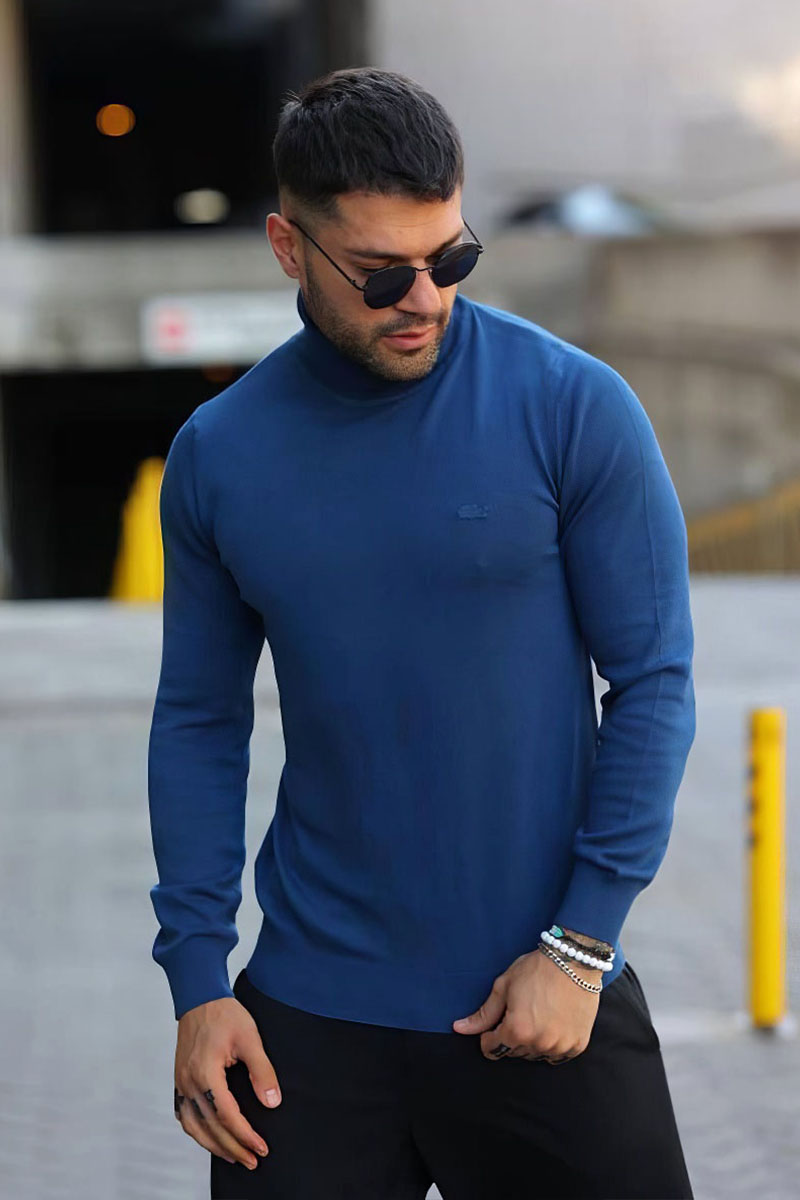 Мужская синяя водолазка Lacoste logo-patch