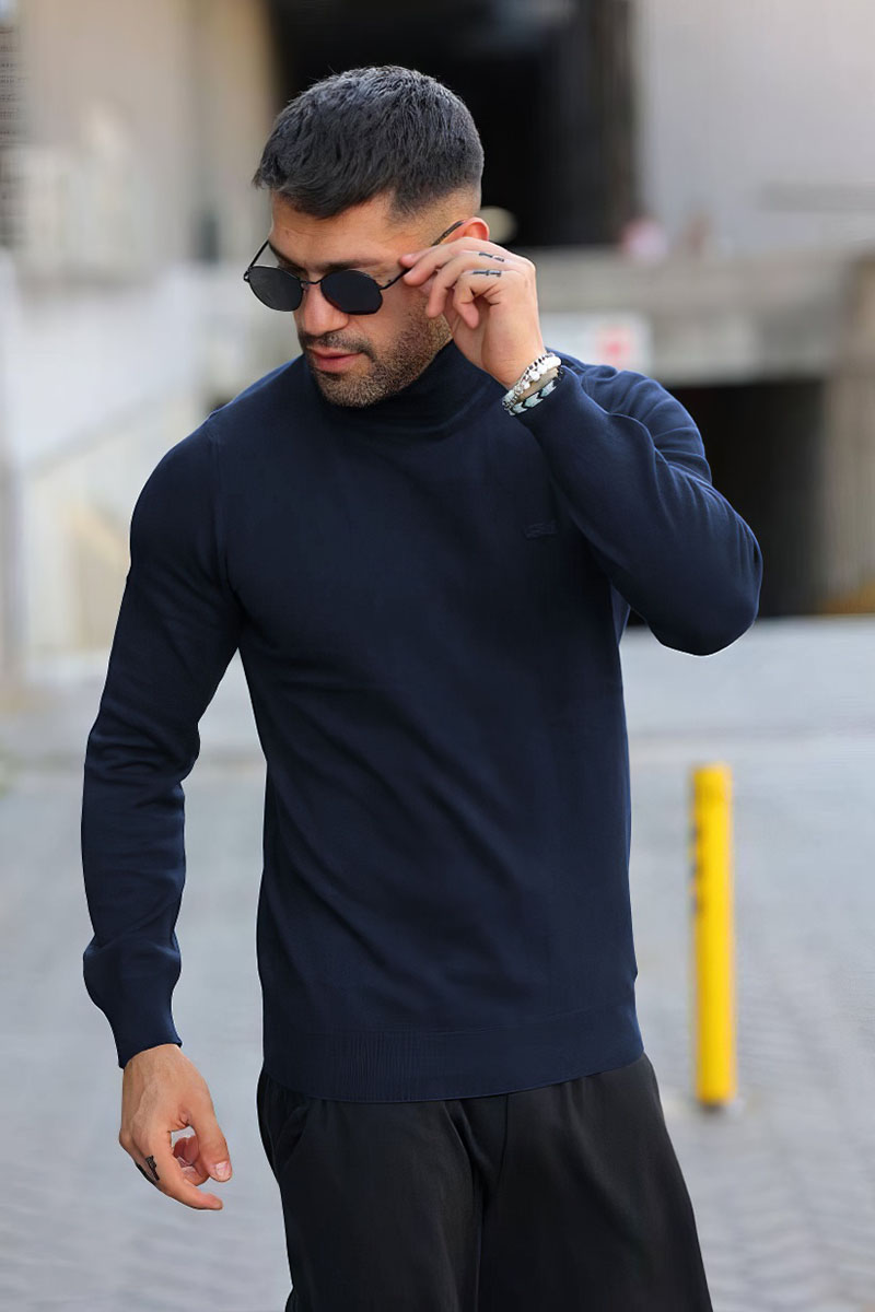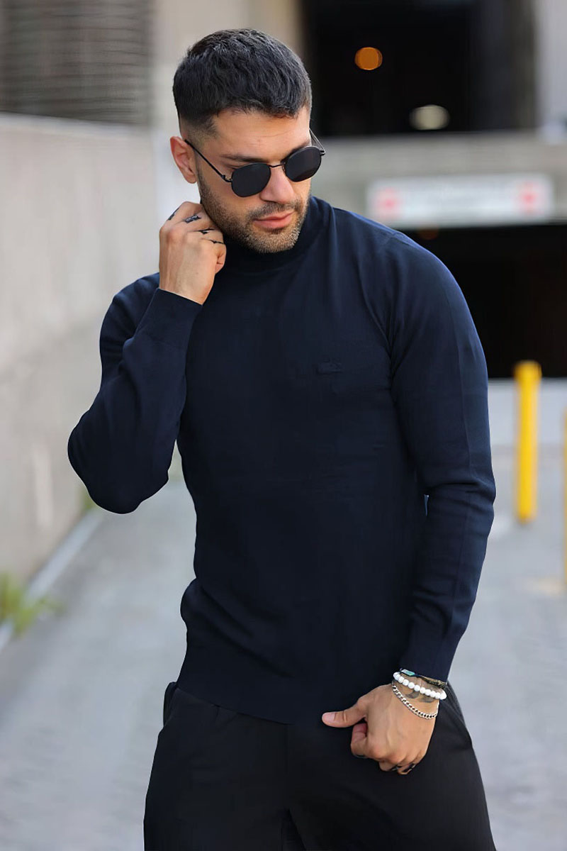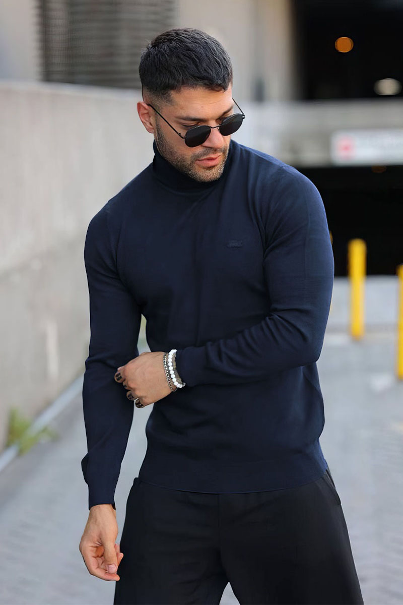 Мужская тёмно-синяя водолазка Lacoste logo-patch