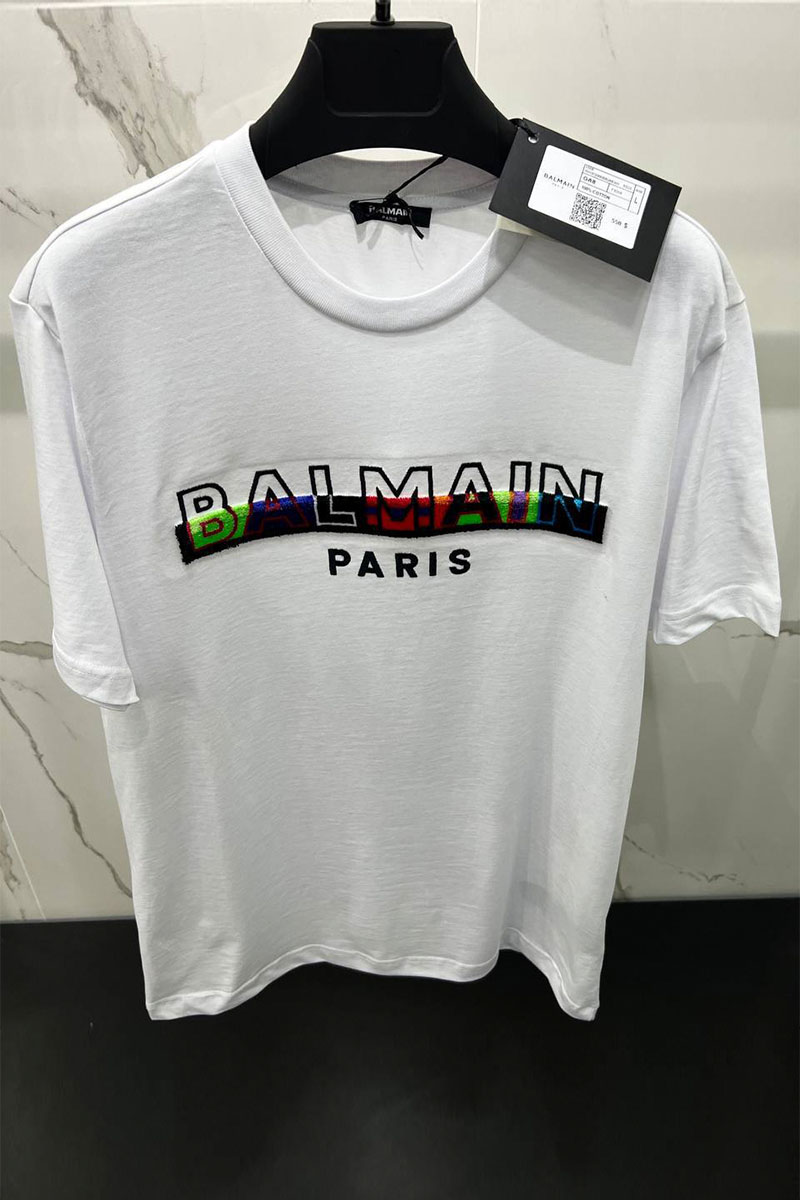 Белая мужская футболка Balmain textured-logo