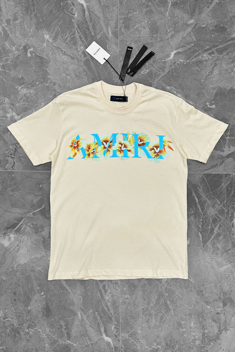 Бежевая оверсайз футболка Amiri Hibiscus Logo