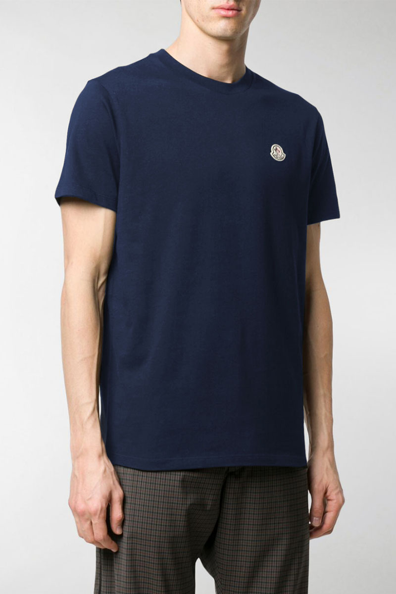 Брендовая мужская футболка Moncler тёмно-синего цвета