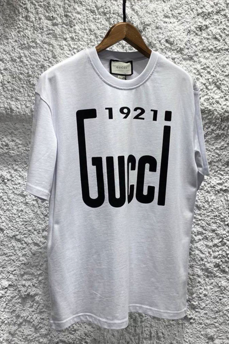 Брендовая оверсайз футболка Gucci 1921 logo - White
