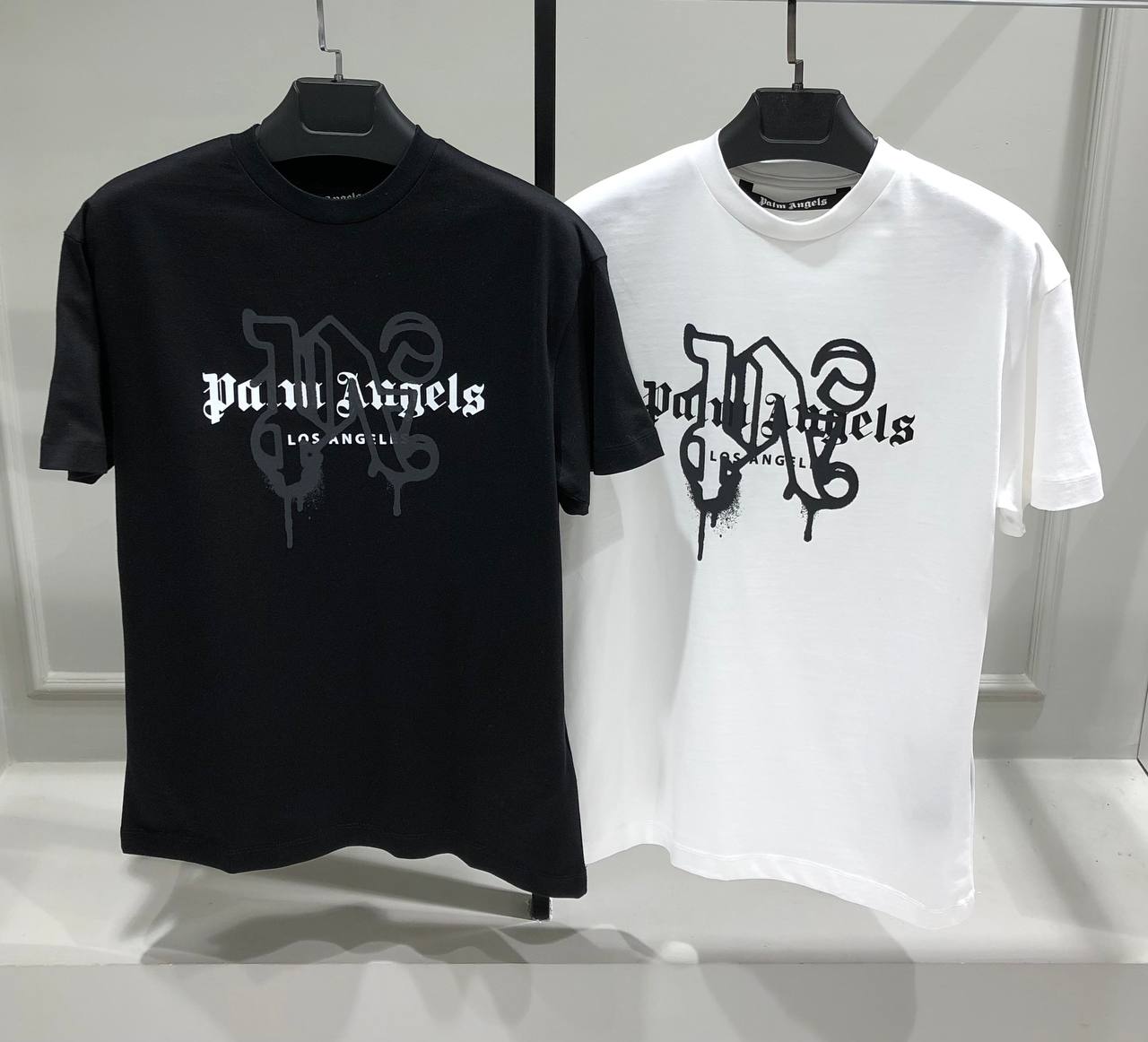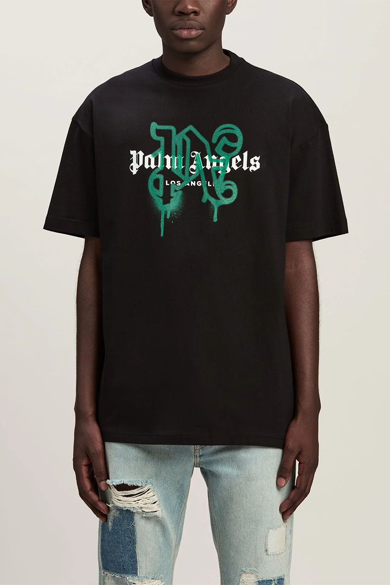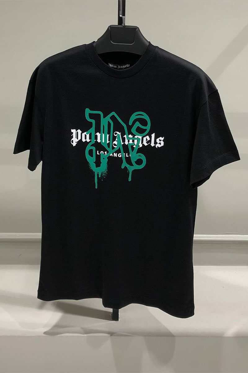 Чёрная футболка Palm Angels Los Angeles monogram spray