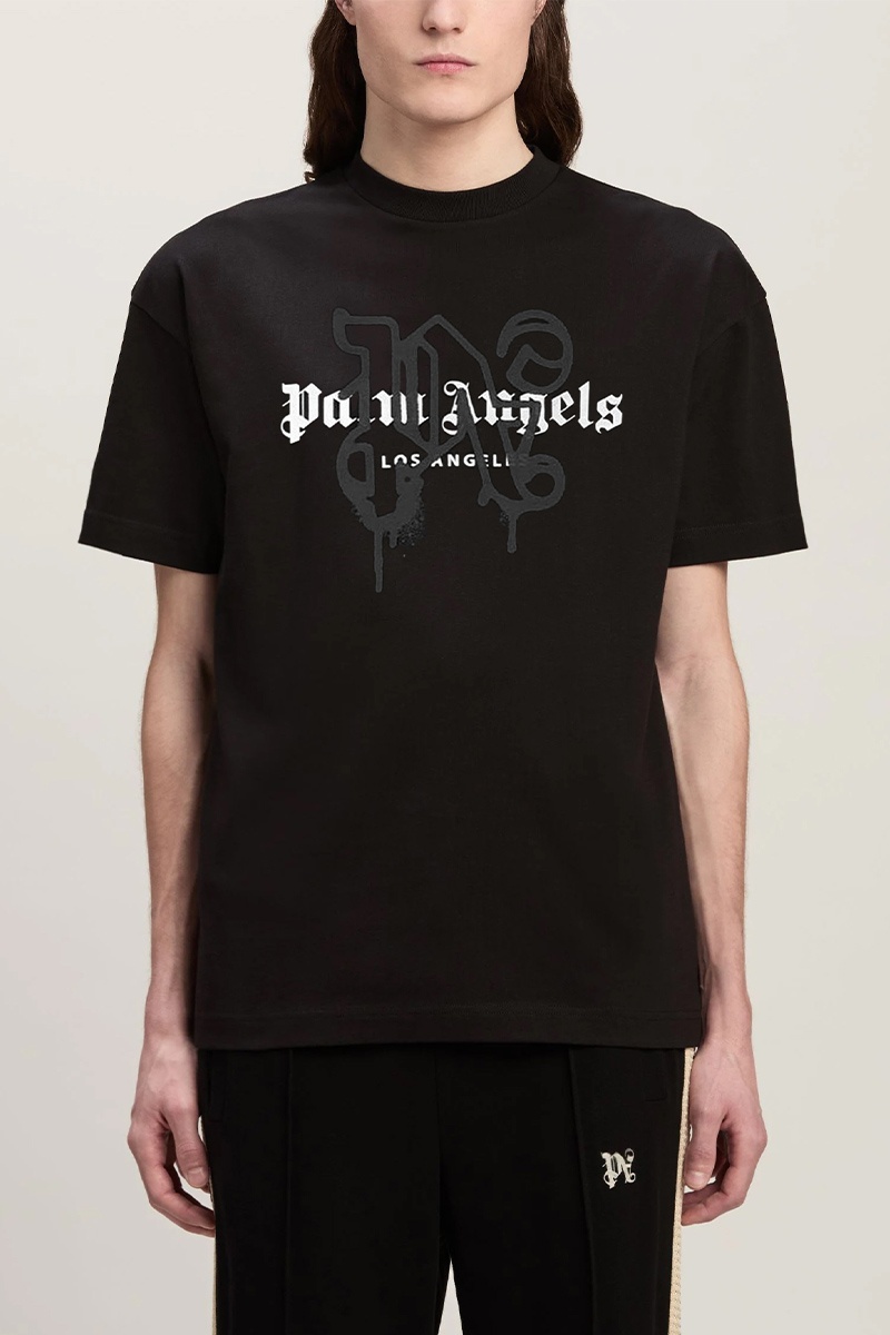 Чёрная футболка Palm Angels Los Angeles monogram spray