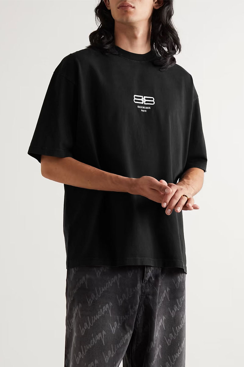 Чёрная оверсайз футболка Balenciaga BB Paris