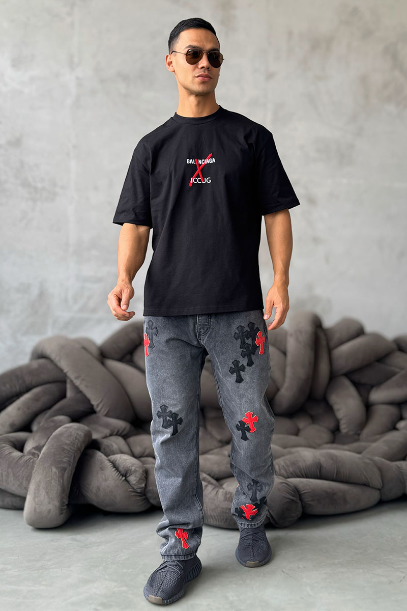 Чёрная оверсайз футболка Balenciaga Collaboration