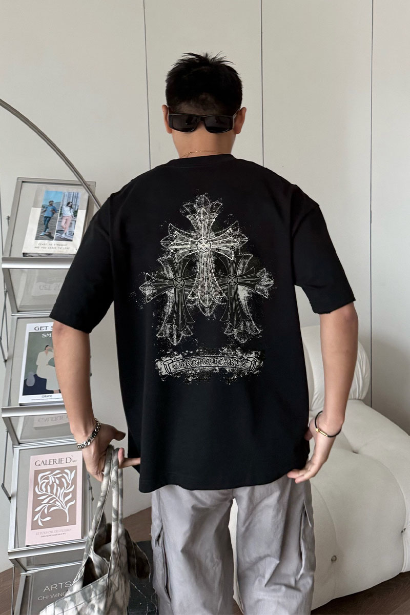 Чёрная оверсайз футболка Chrome Hearts Premium