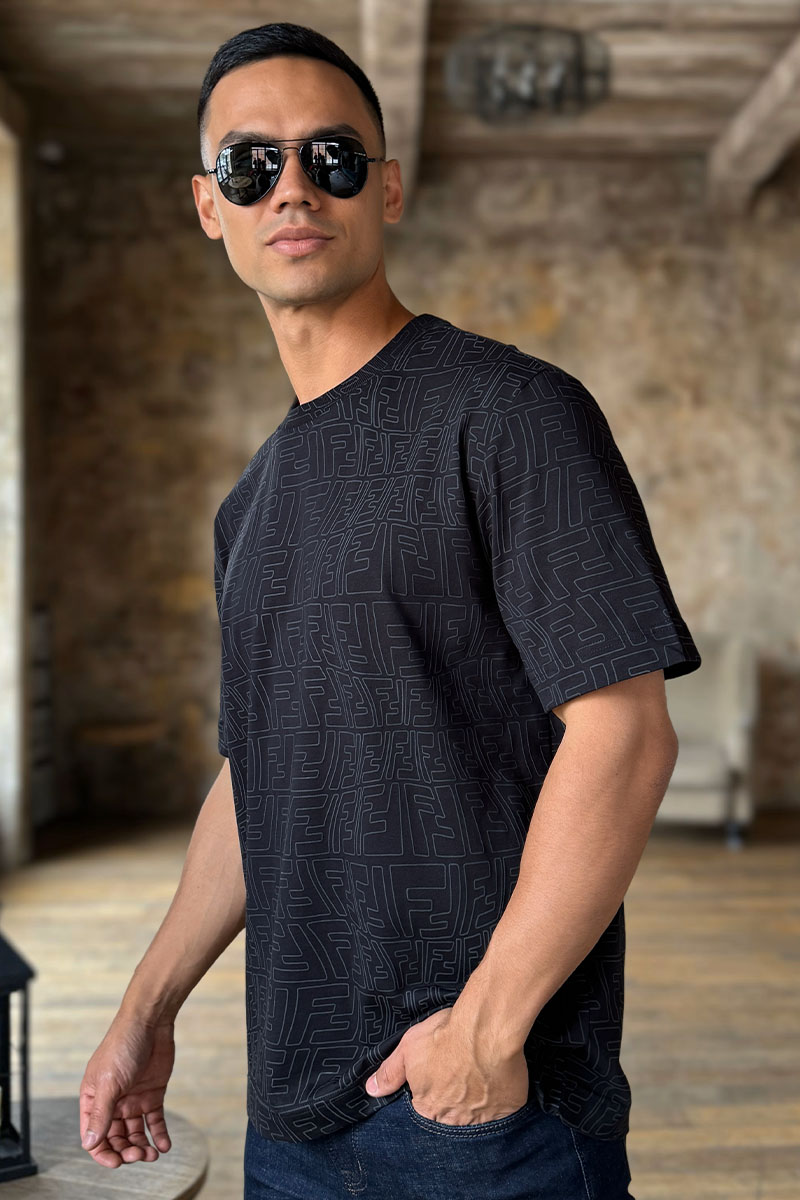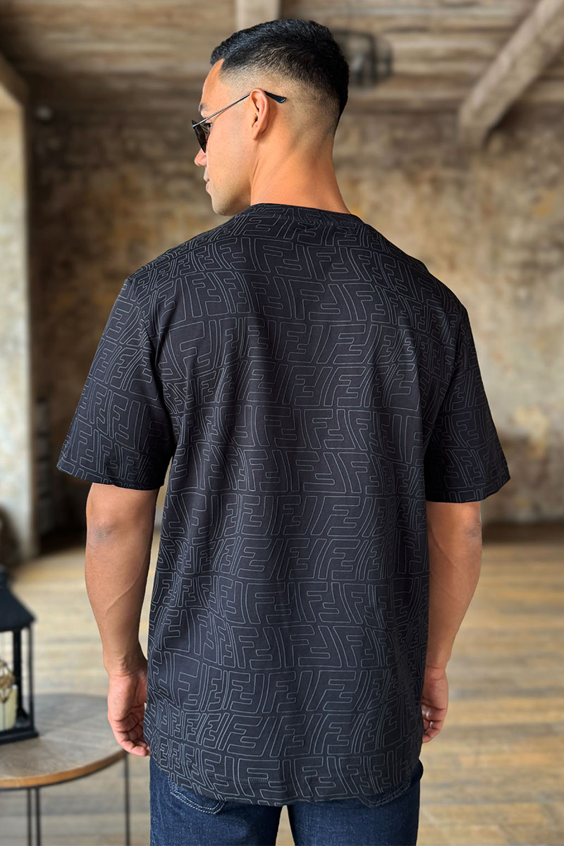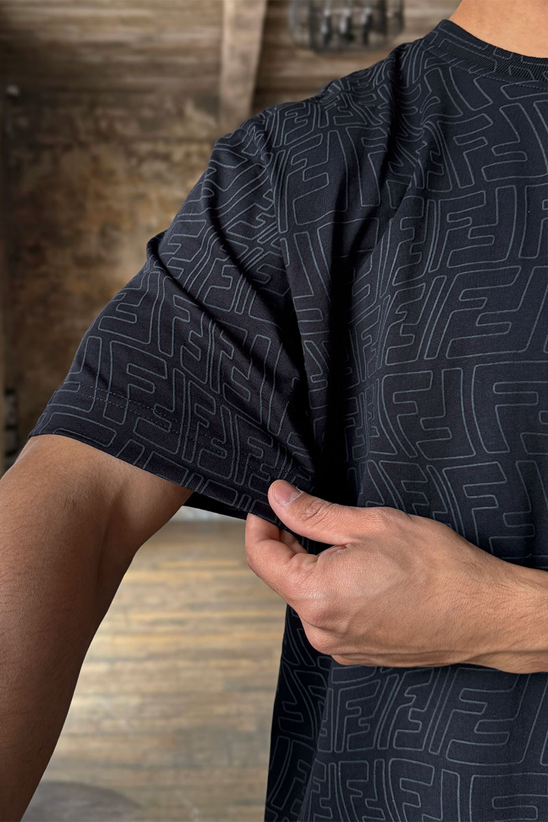 Чёрная оверсайз футболка Fendi distorted monogram pattern