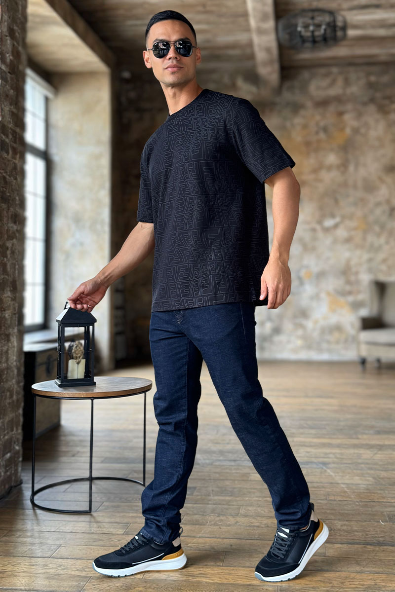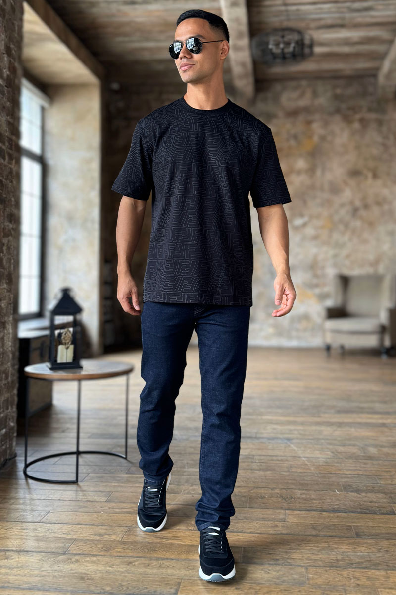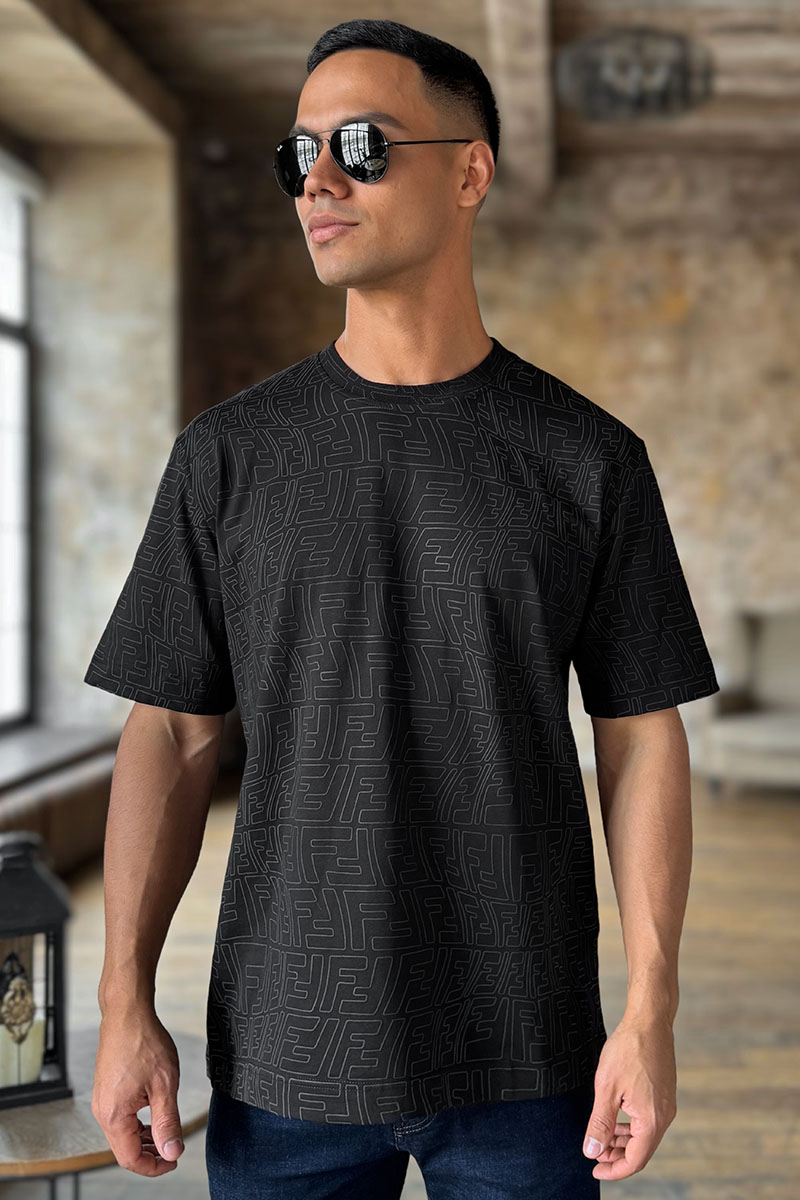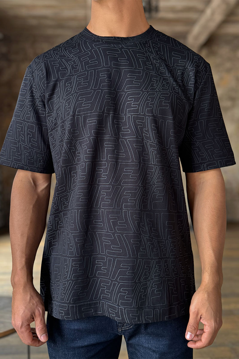 Чёрная оверсайз футболка Fendi distorted monogram pattern