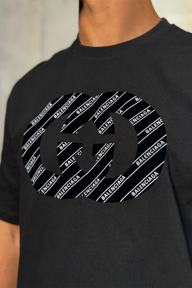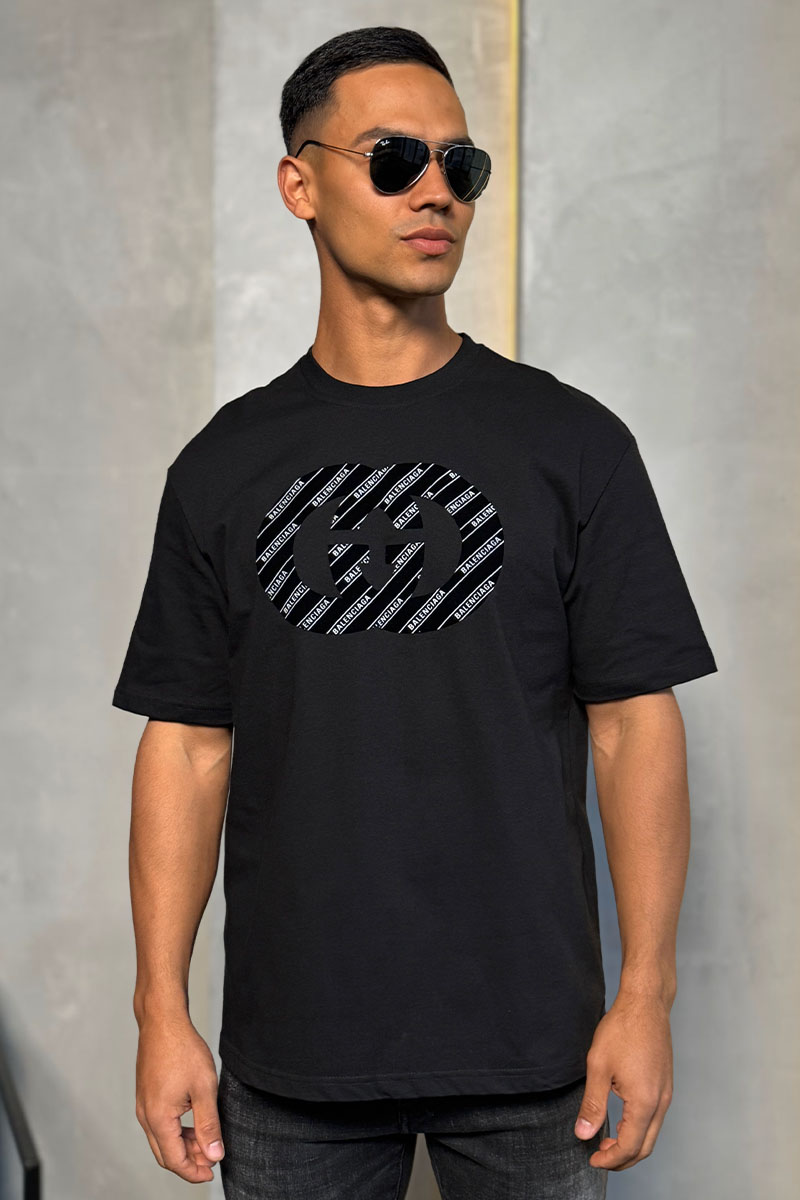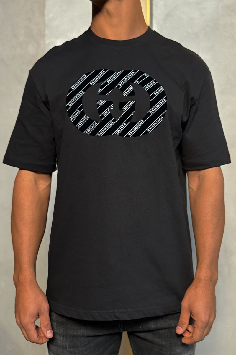 Чёрная оверсайз футболка Gucci x Balenciaga Collaboration