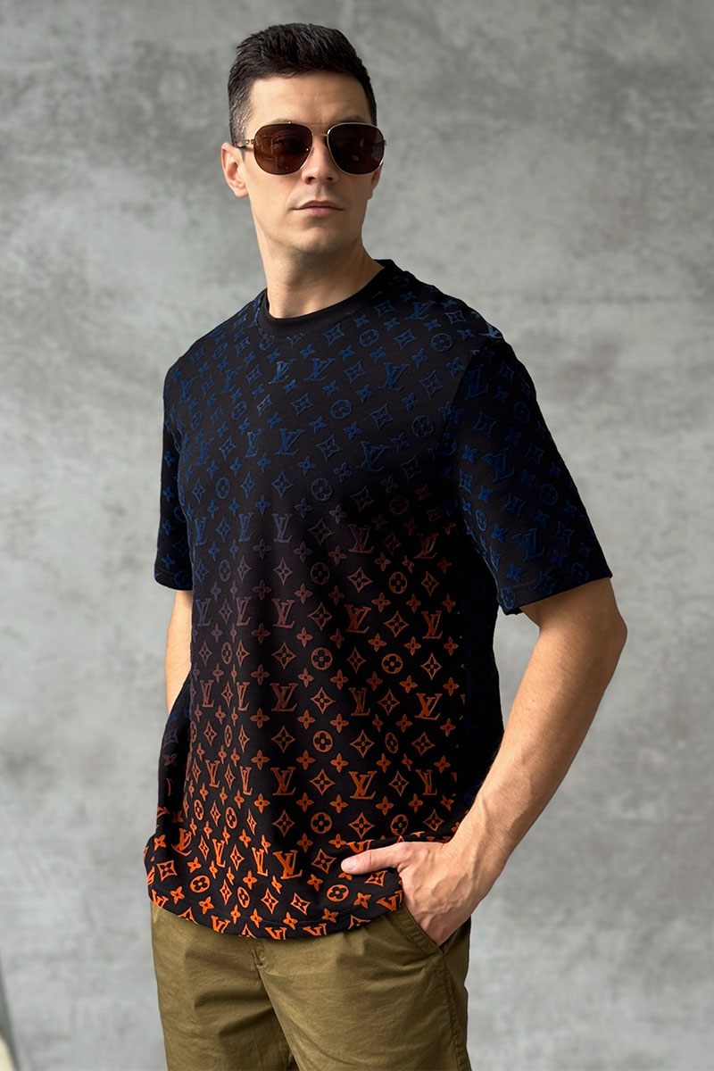 Чёрная оверсайз футболка Louis Vuitton Monogram Gradient