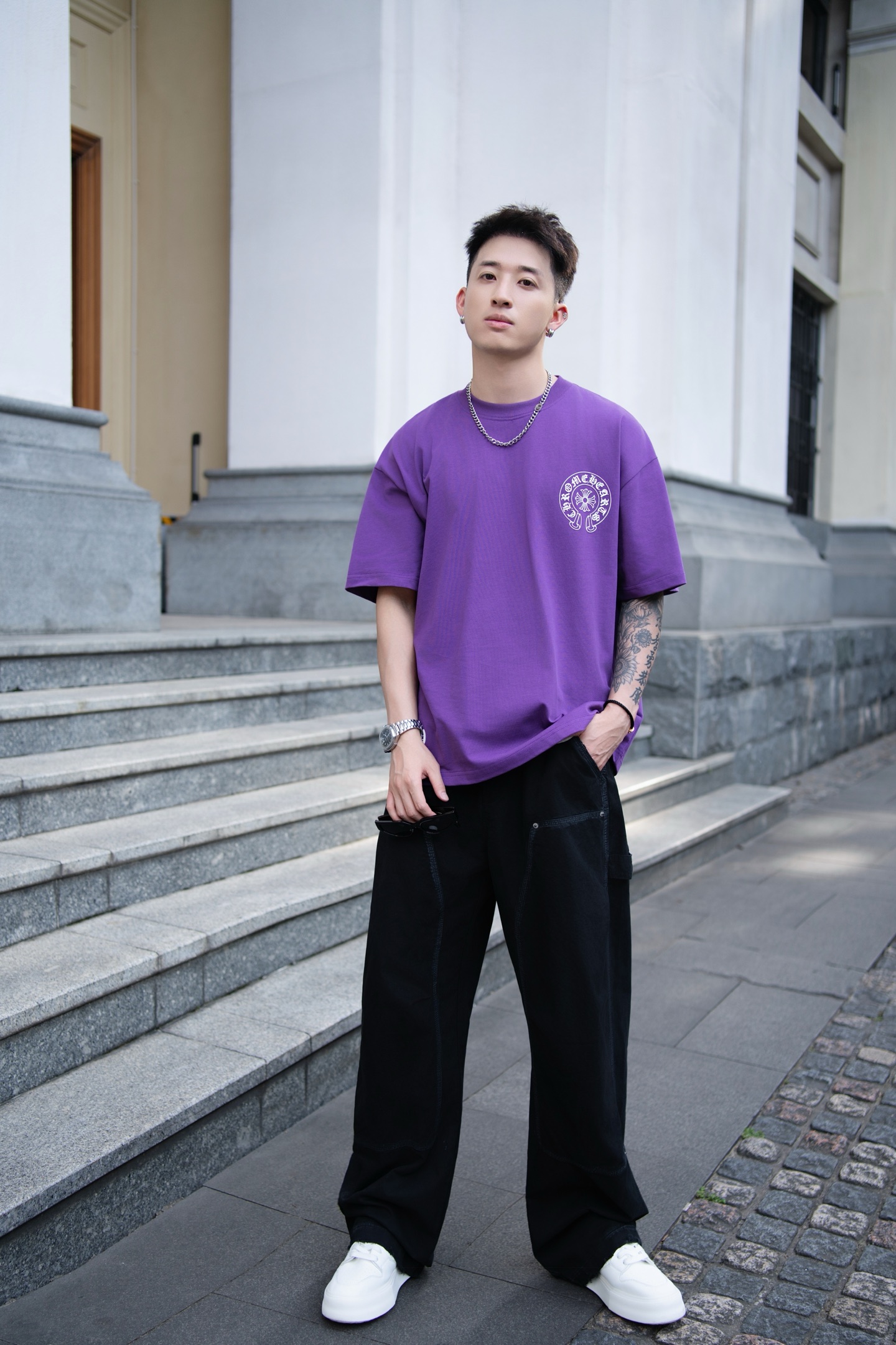 Фиолетовая оверсайз футболка Chrome Hearts Premium