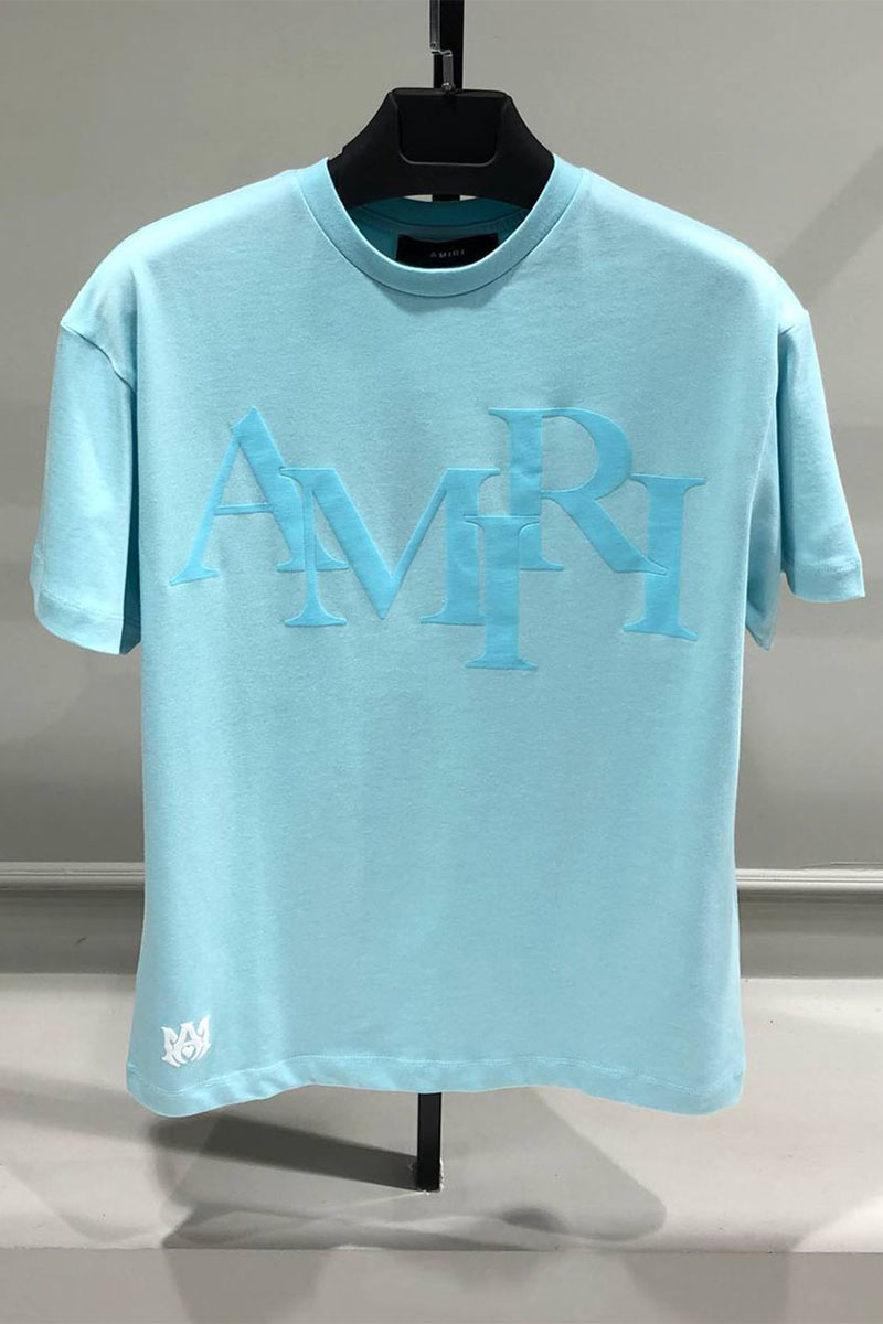 Футболка голубого цвета Amiri staggered logo