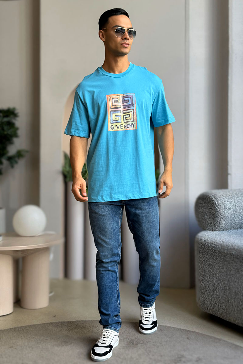 Голубая оверсайз футболка Givenchy 4G Sun Print