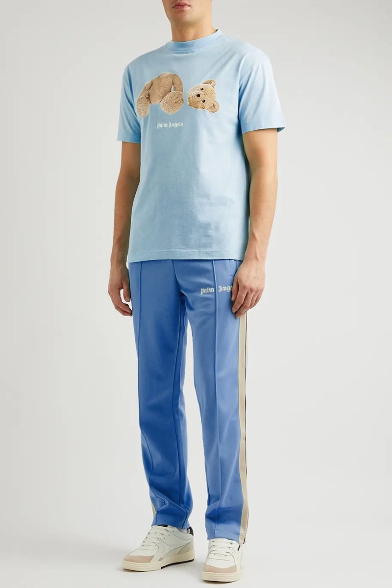 Голубая оверсайз футболка Palm Angels Bear Classic